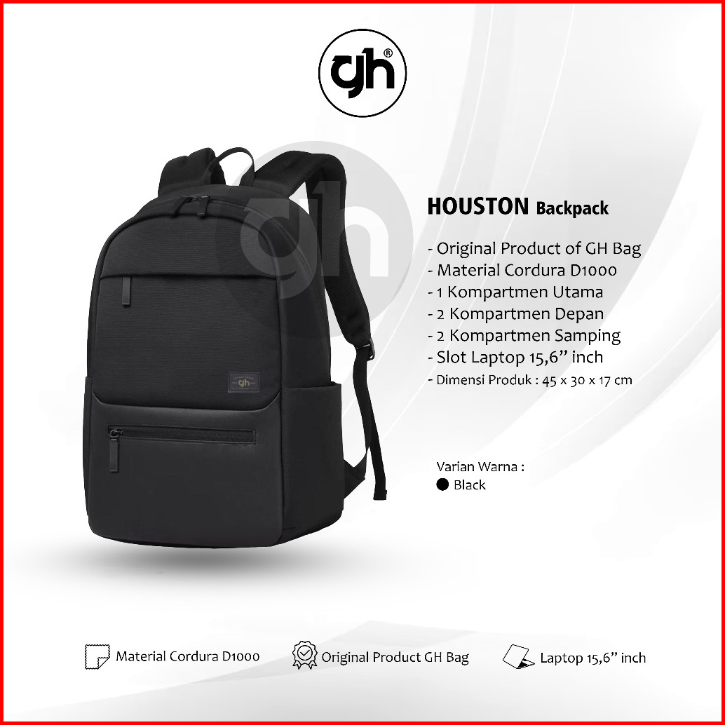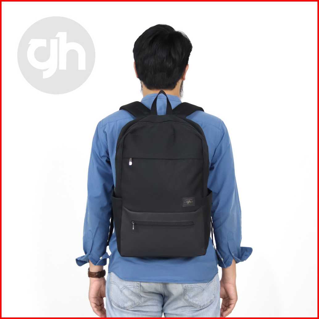 Gh-bag Tas Sekolah Ransel Backpack Bima Houston Cowok Cewek Kuliah Murah Cordura Murmer Hitam Kanvas