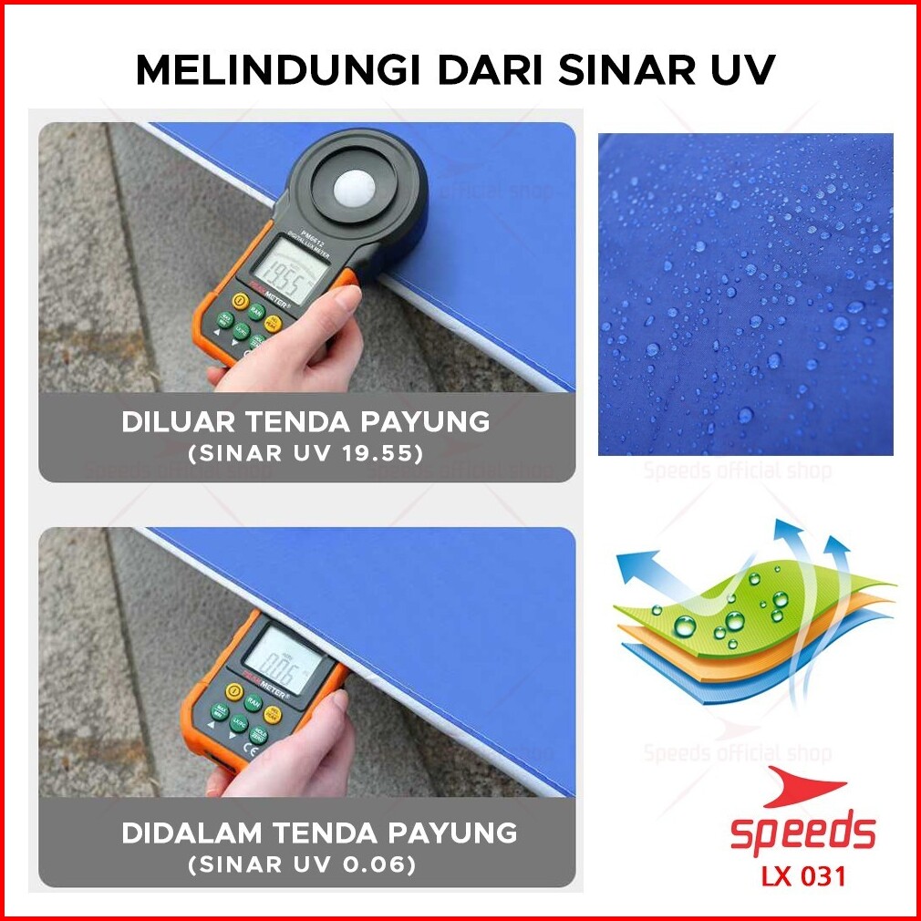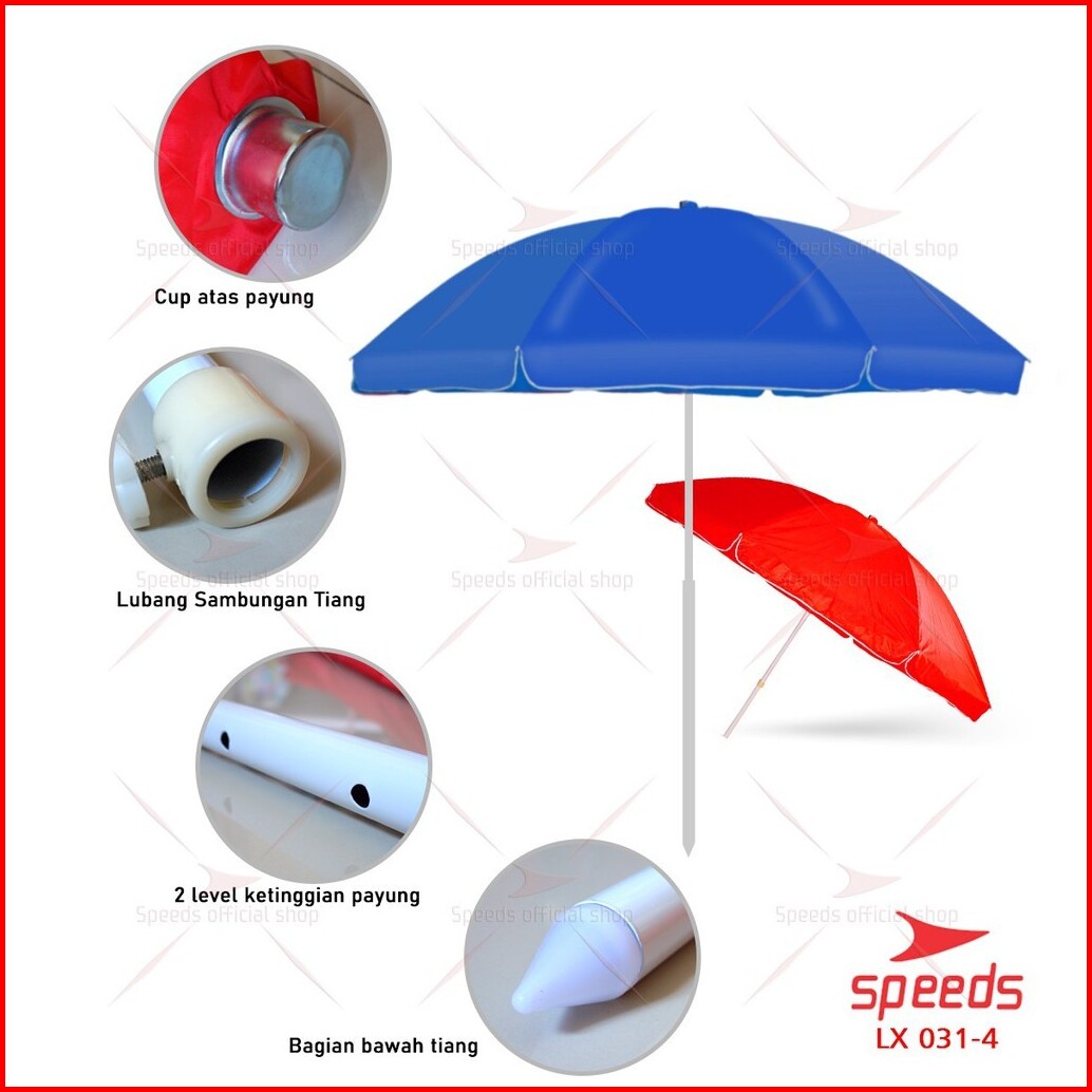 Speeds Payung Tenda Lebar 280cm Payung Pantai Cafe Bazaar Parasol Diameter Tenda Booth Jualan 031-4