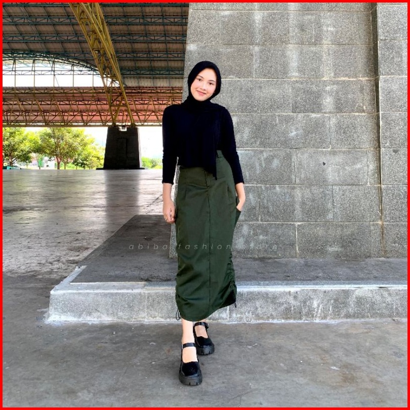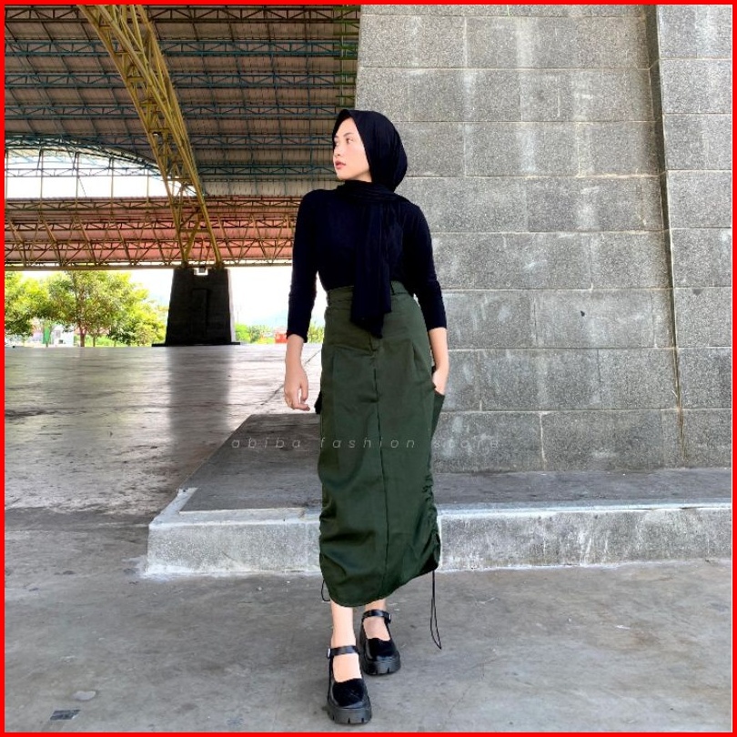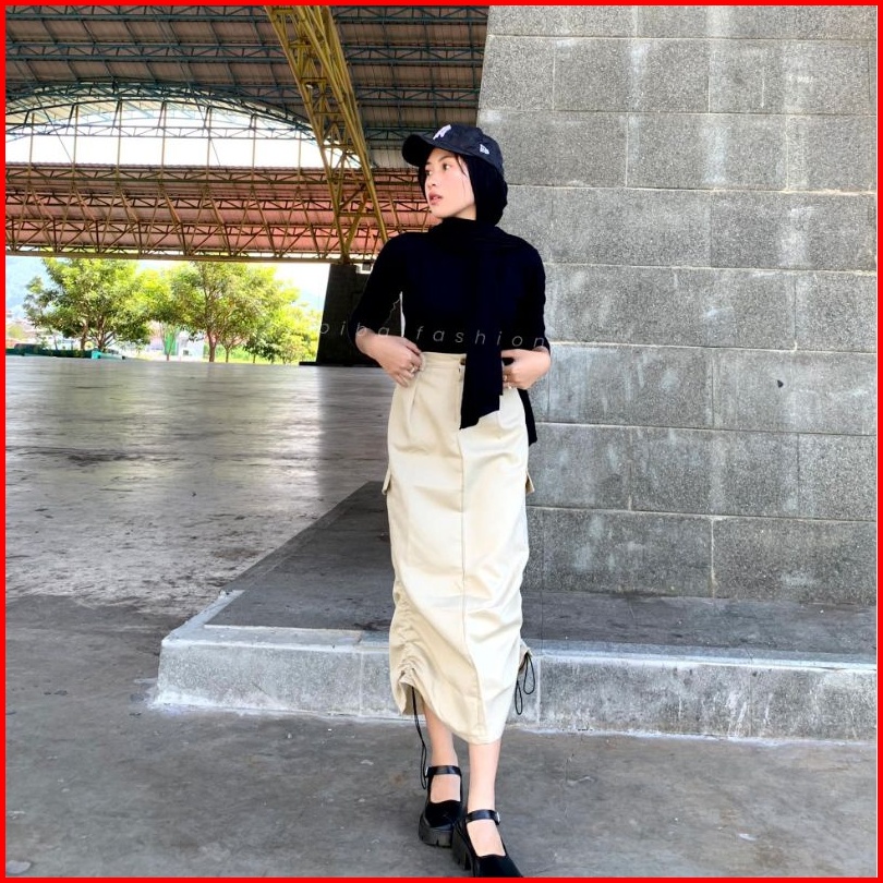 Youroutfits - Cargo Skirt Wanita - Rok Kargo Serut Wanita - Rok Serut Wanita - Rok Cargo