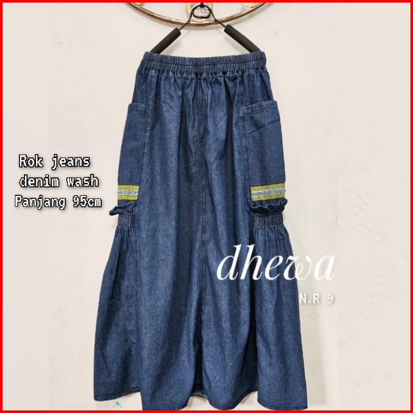 Hitam, Hijau, Krem, MOKA, ROK JEANS DENIM WASH