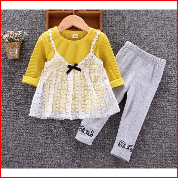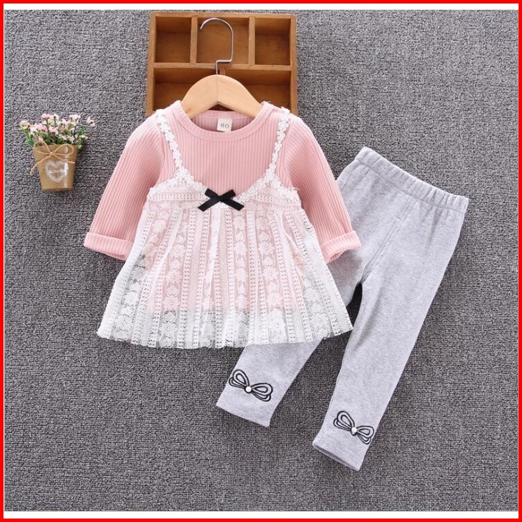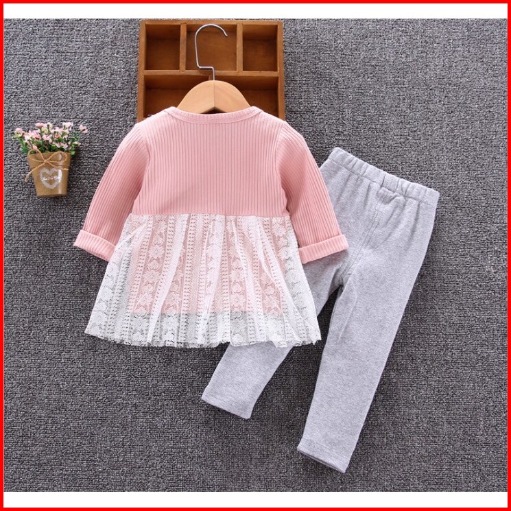Sl22- Setelan Atasan Lengan Panjang Dan Celana Legging Baju Setelan Anak Perempuan Kualitas Premium