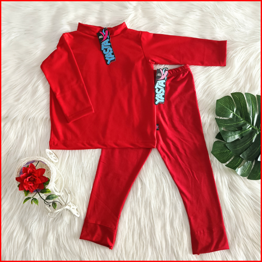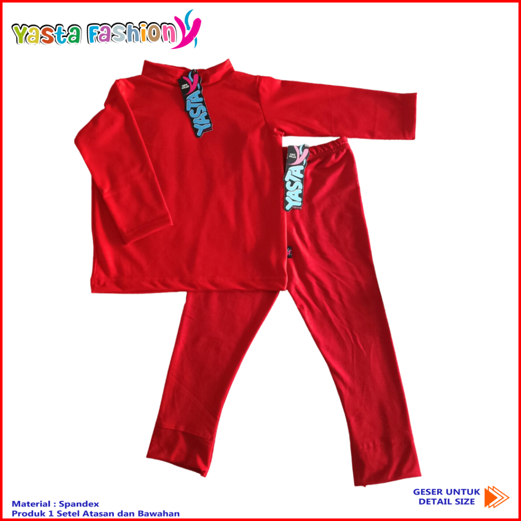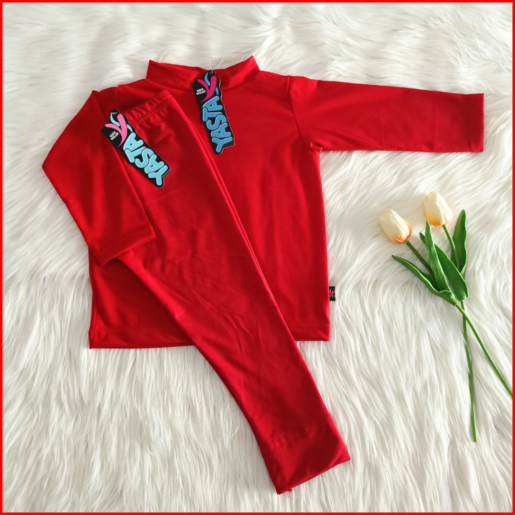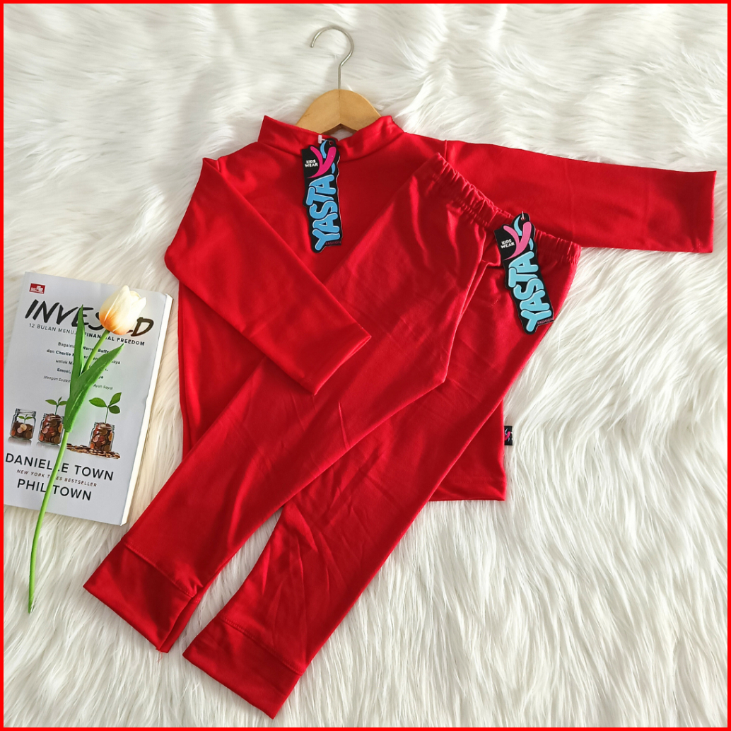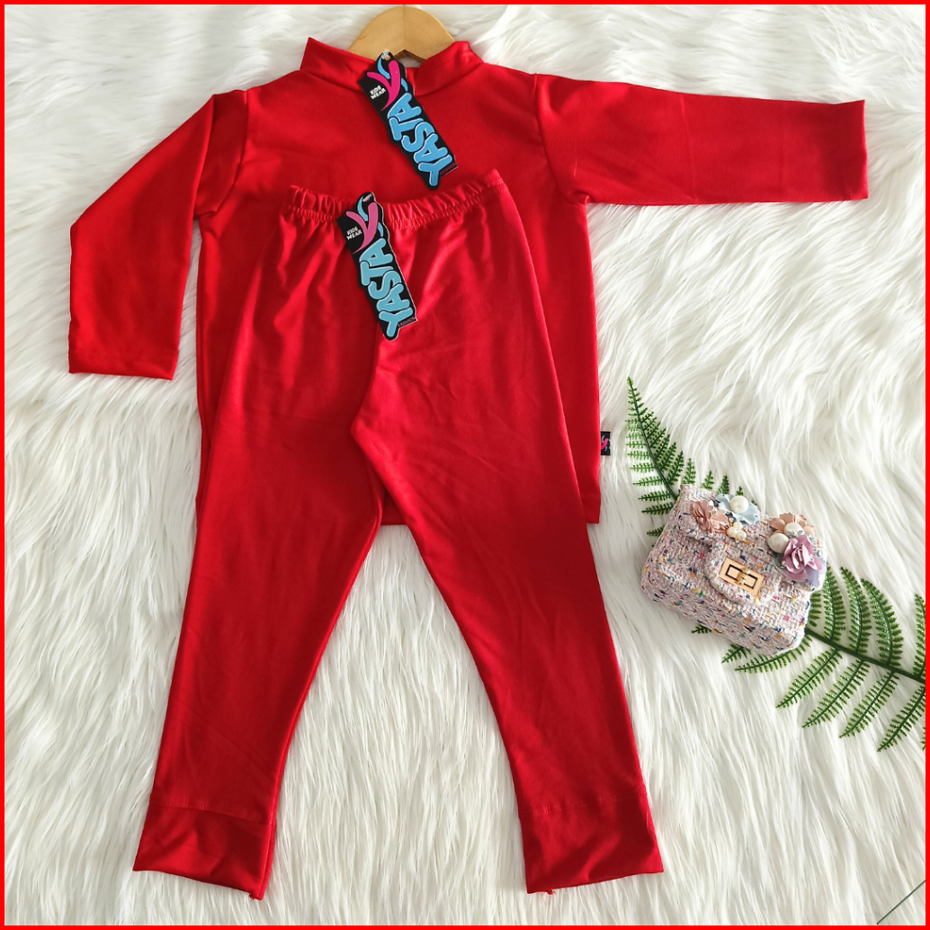 Baju Setelan Anak Manset Dan Celana Legging 3-9 Tahun Merah Yasta Fashion