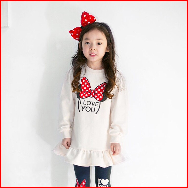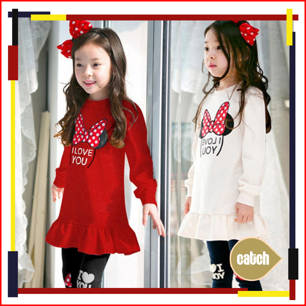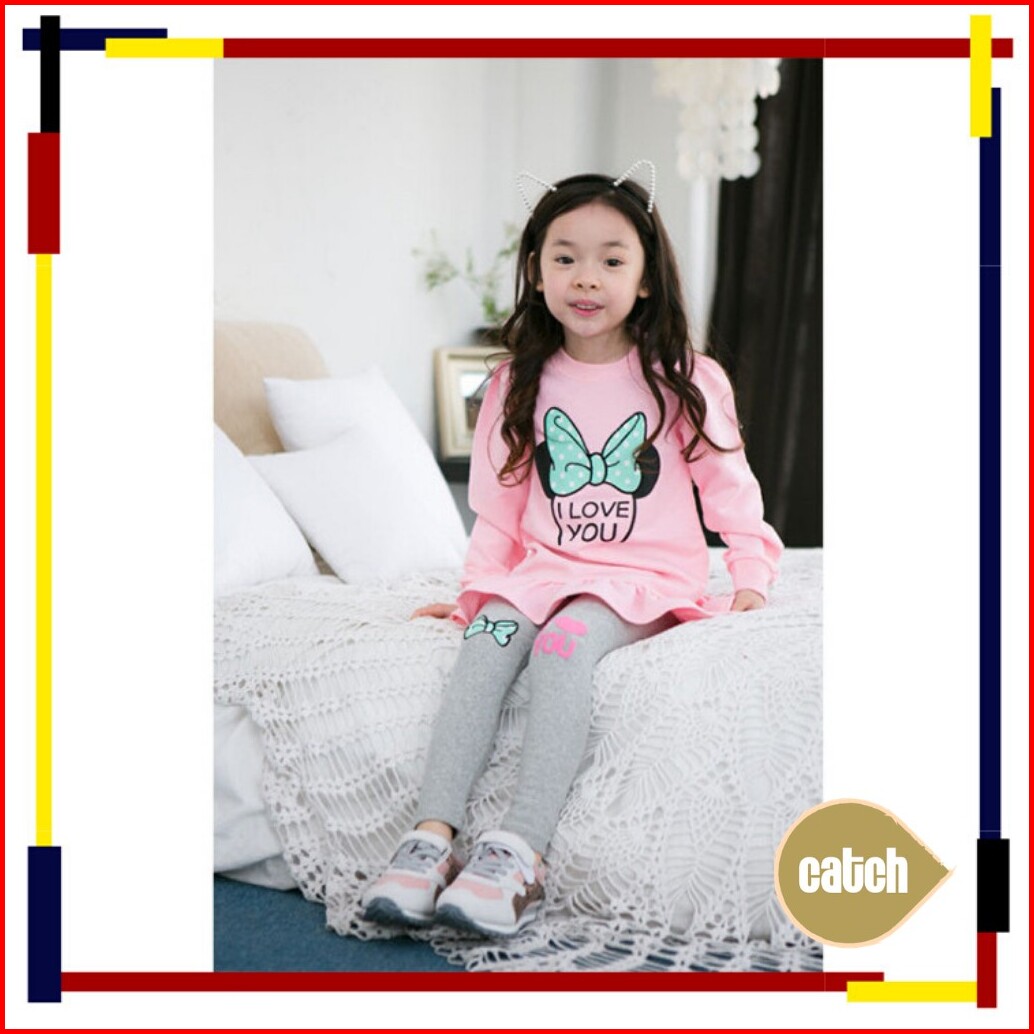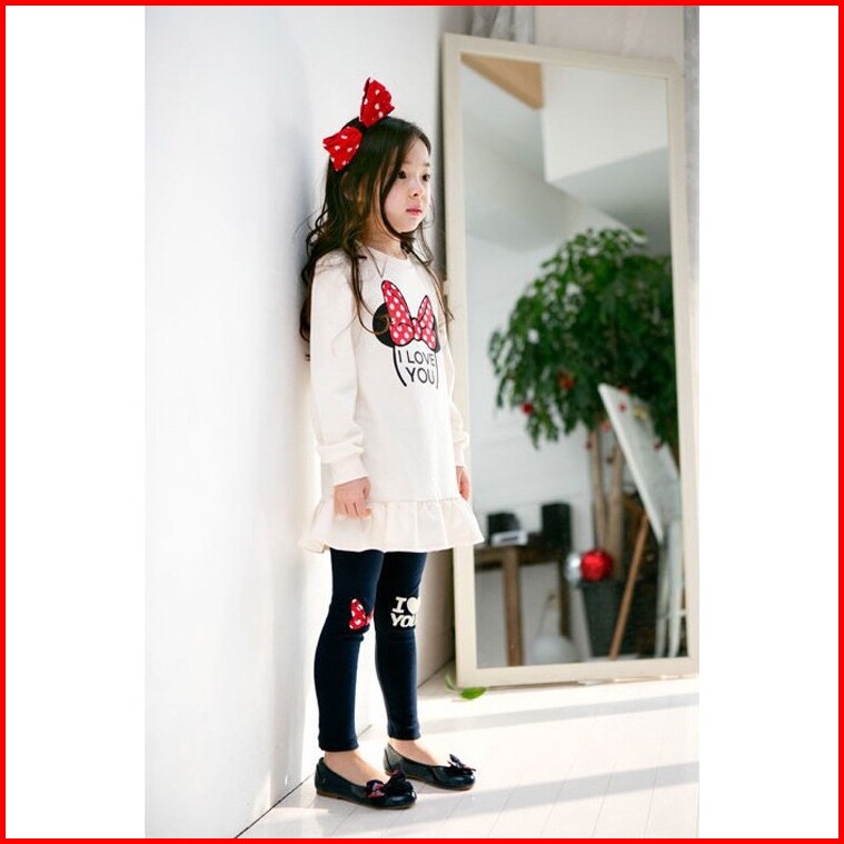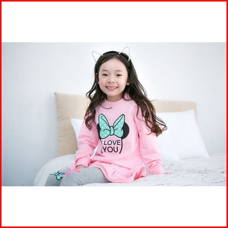Setelan Kaos Lengan Celana Panjang Anak Perempuan Motif Minnie Mouse Ready 3 Warna