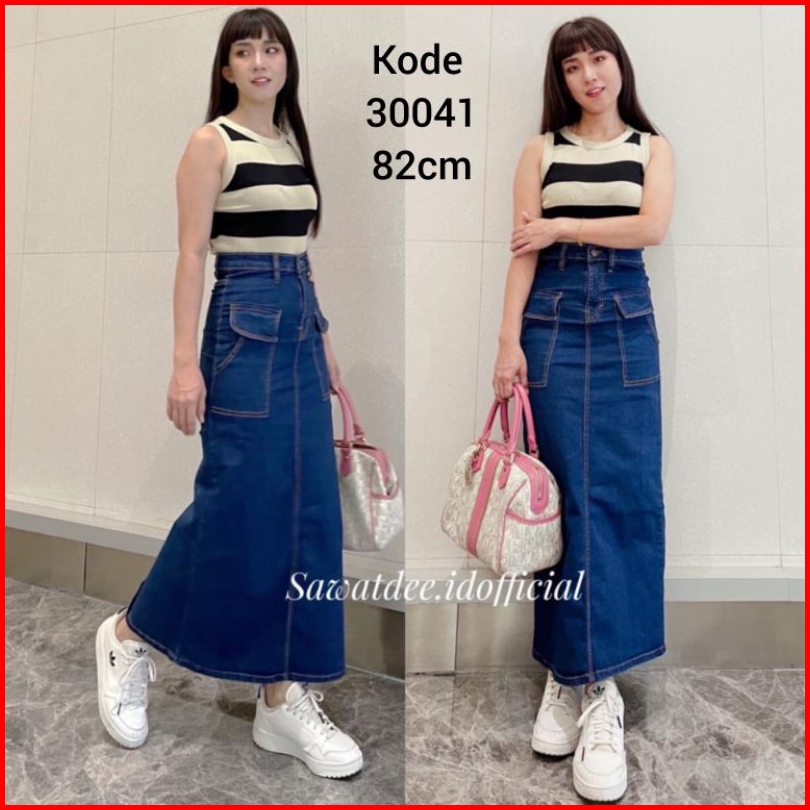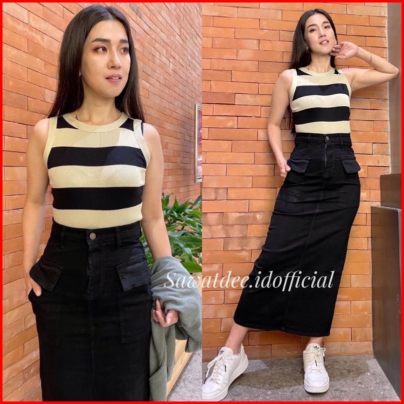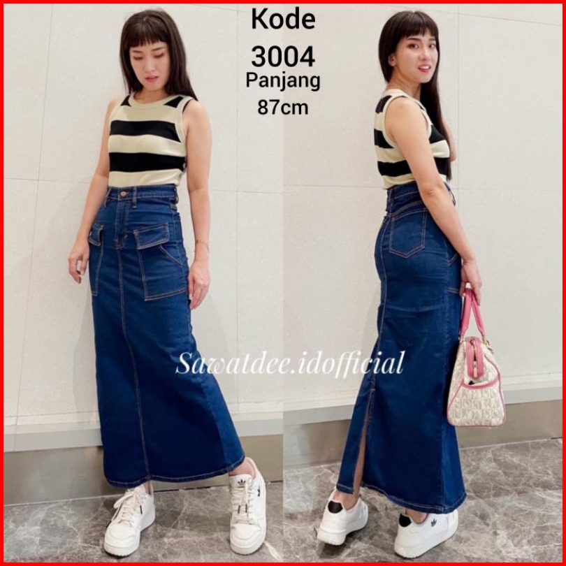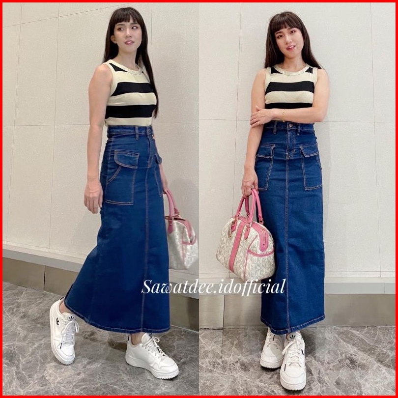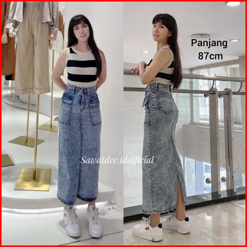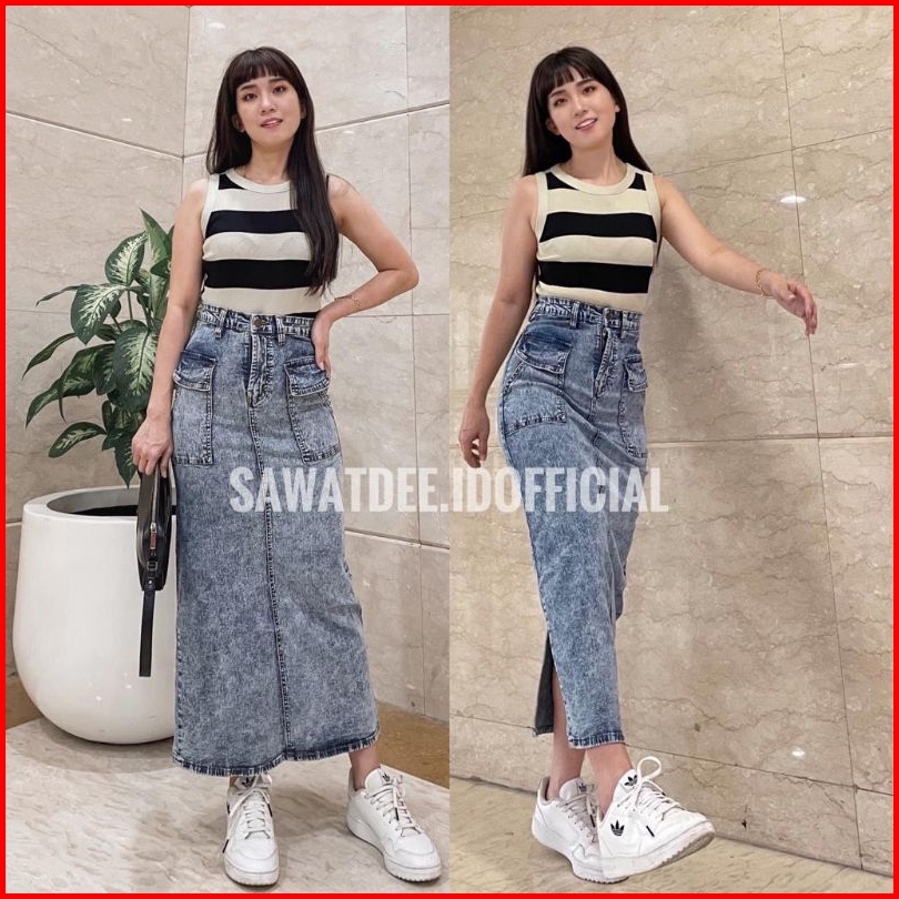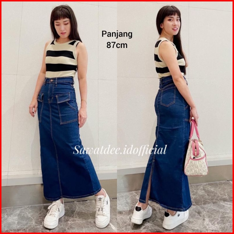 Rok Panjang Kantong Cargo Rok Span Panjang Rok Jeans High Waist Rok Span Cargo