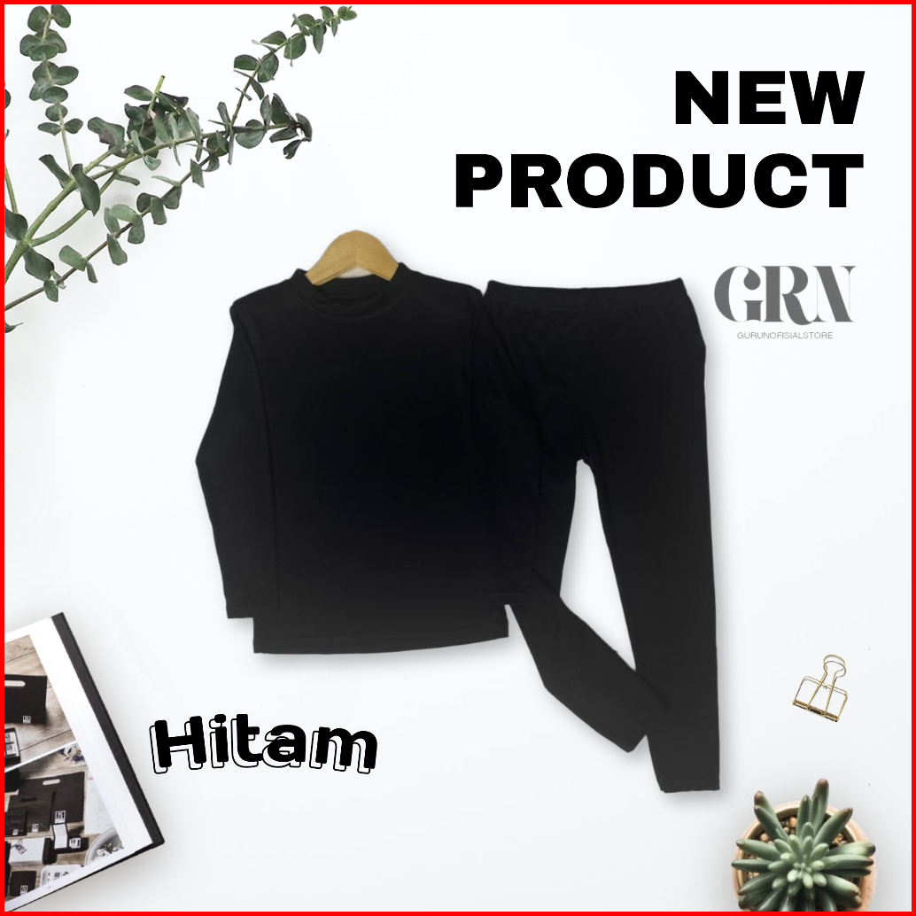 Setelan Kaos Manset Dan Legging Anak Perempuan Laki Laki Lengan Panjang Usia 1-10 Tahun Hitam