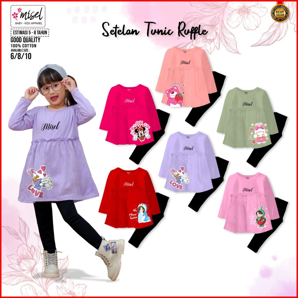 Setelan Anak Perempuan Cewek Misel Lengan Panjang Celana Legging Usia 2 Sampai 8 Tahun