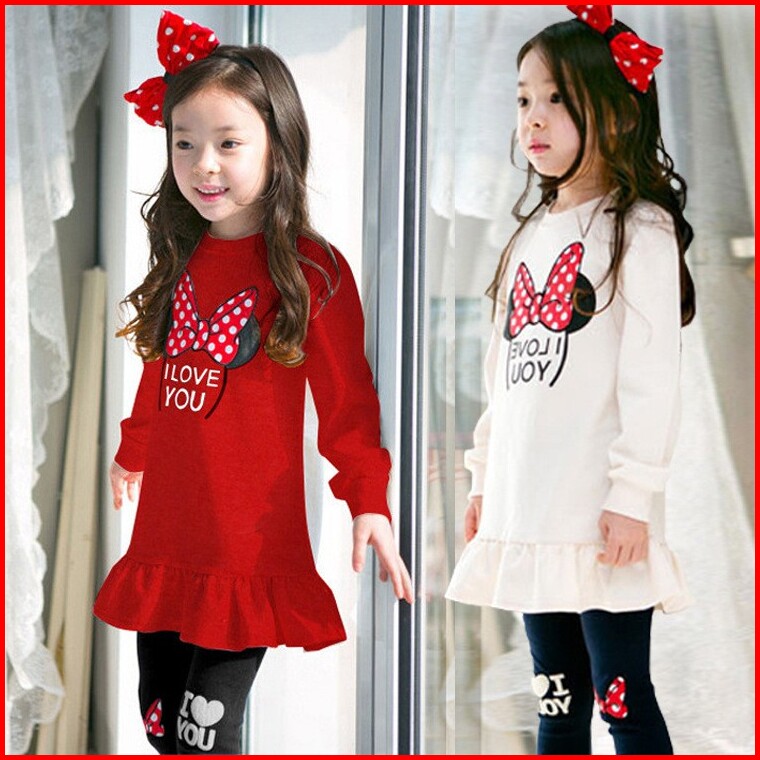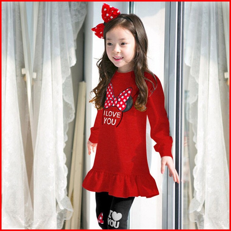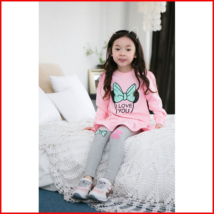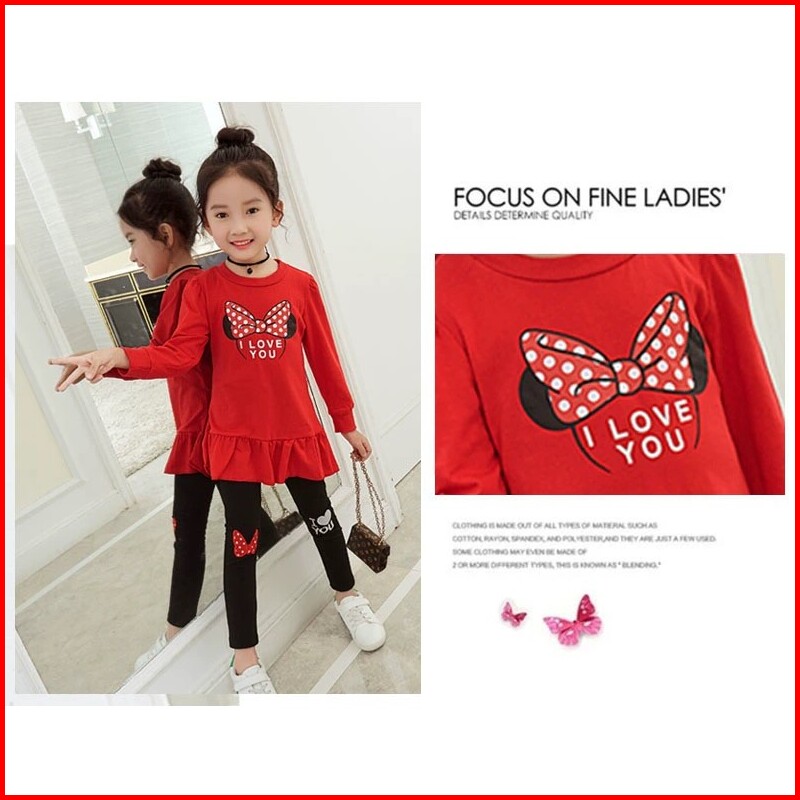 Espaso Setelan Kaos Lengan Celana Panjang Anak Perempuan Motif Minnie Mouse Ready 3 Warna