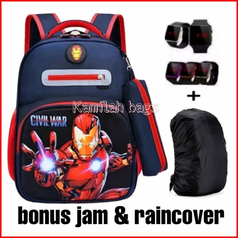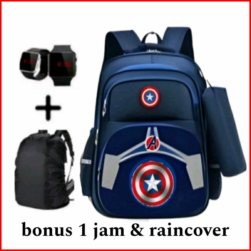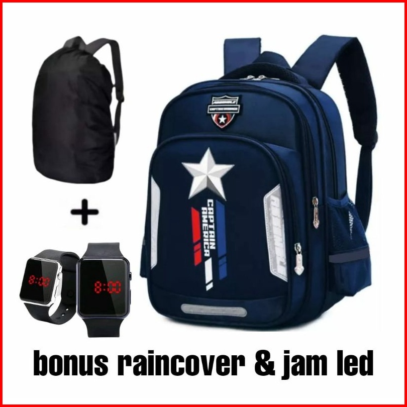 Tas Anak Laki - Tas Sekolah Anak Laki - Tas Anak Cowo - Ransel Sekolah Anak - Tas Ransel Anak Laki Bonus Raincover Jam L