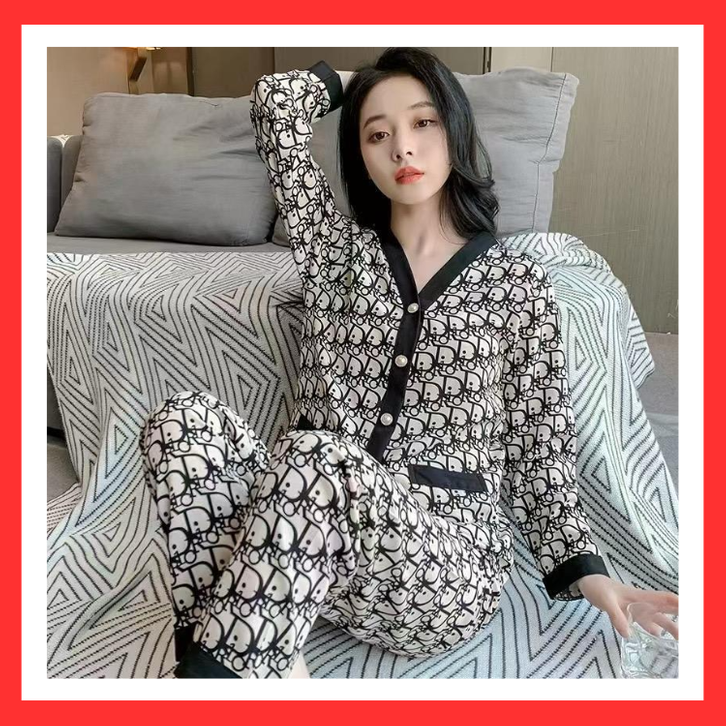 [Star] Baju Tidur set piyama wanita dewasa set pakaian setelan lengan pendek celana panjang bahan satin milksilk lembut