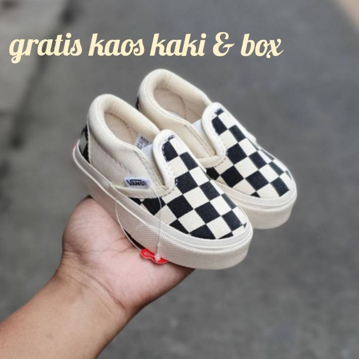 Sepatu Vans Anak Laki Laki Perempuan Slip On Og Cream Checkerboard Slip On Shoes Kids Unisex Terlaris