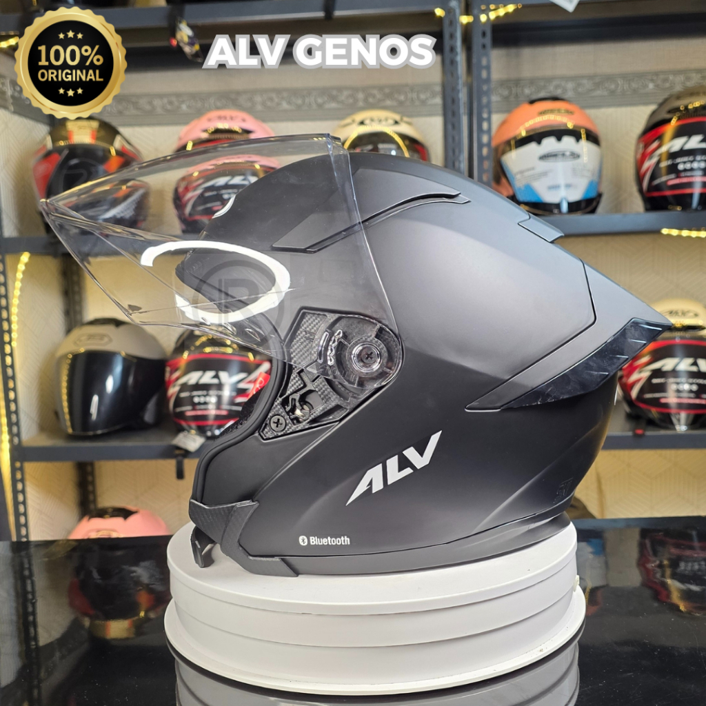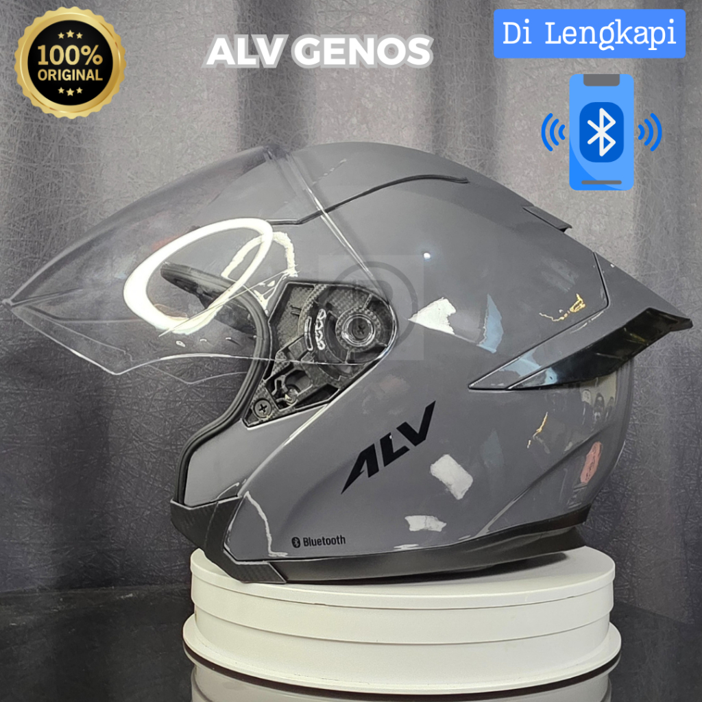 HELM ALV GENOS BLUETOOTH 0RIGINAL SNI TERBARU HALF FACE UKURAN M L MURAH BERKUALITAS BEST SELLER TANPA DP BUNGA 0