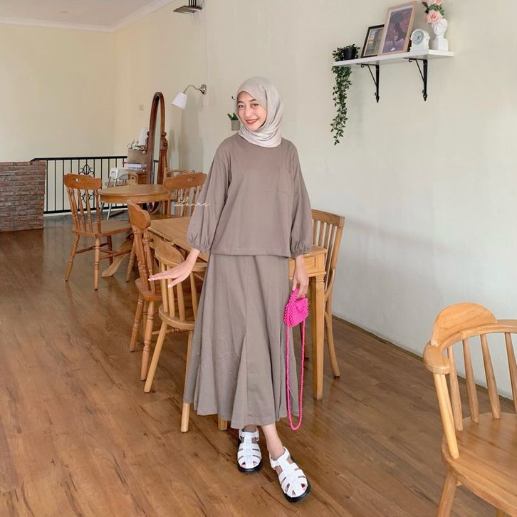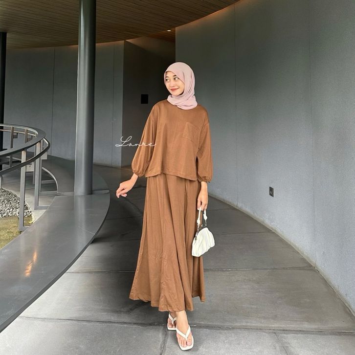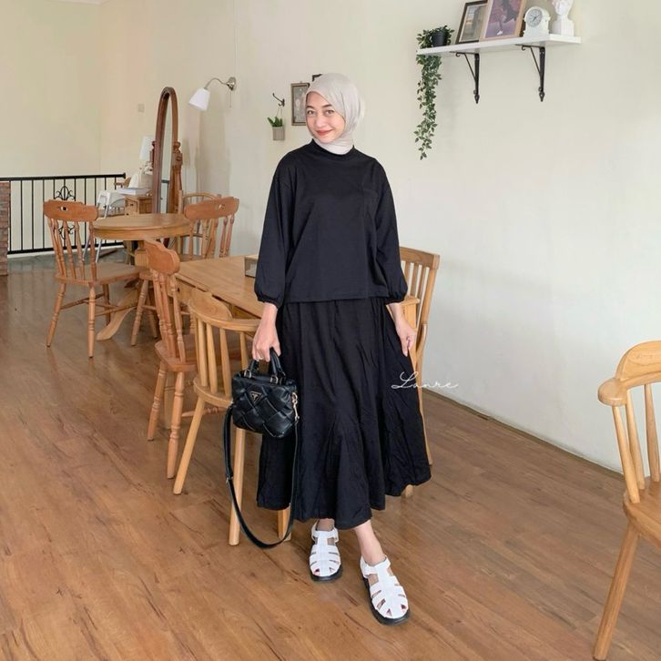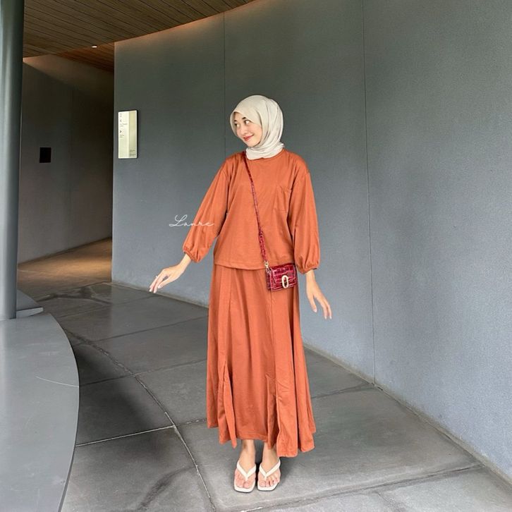 SETELAN WANITA MUSLIMAH SOVIA ONE SET ROK BAHAN KAOS COTTON COMBED KEKINIAN TERLARIS TERMURAH