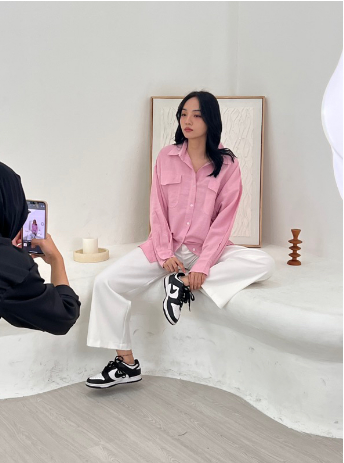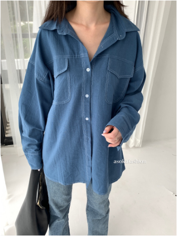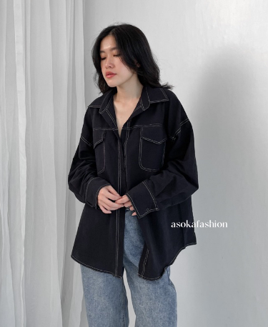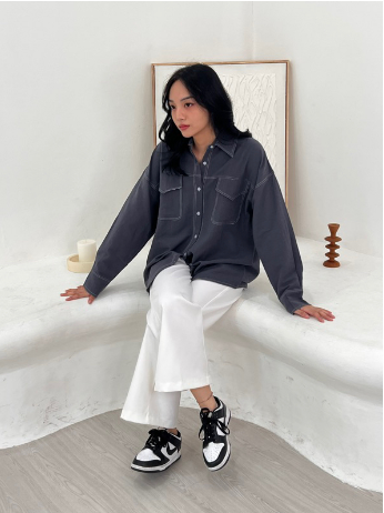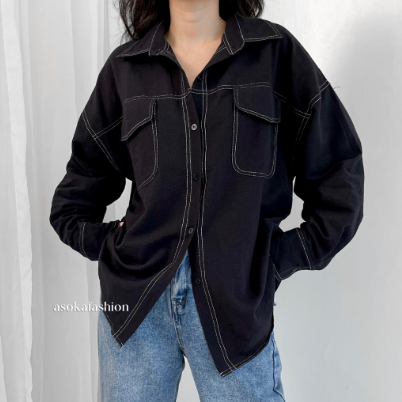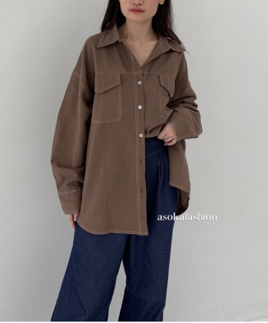 Kemeja Wanita/ Atasan Oversize Wanita /Casual - Pocket Shirt Basic Oversize Linen