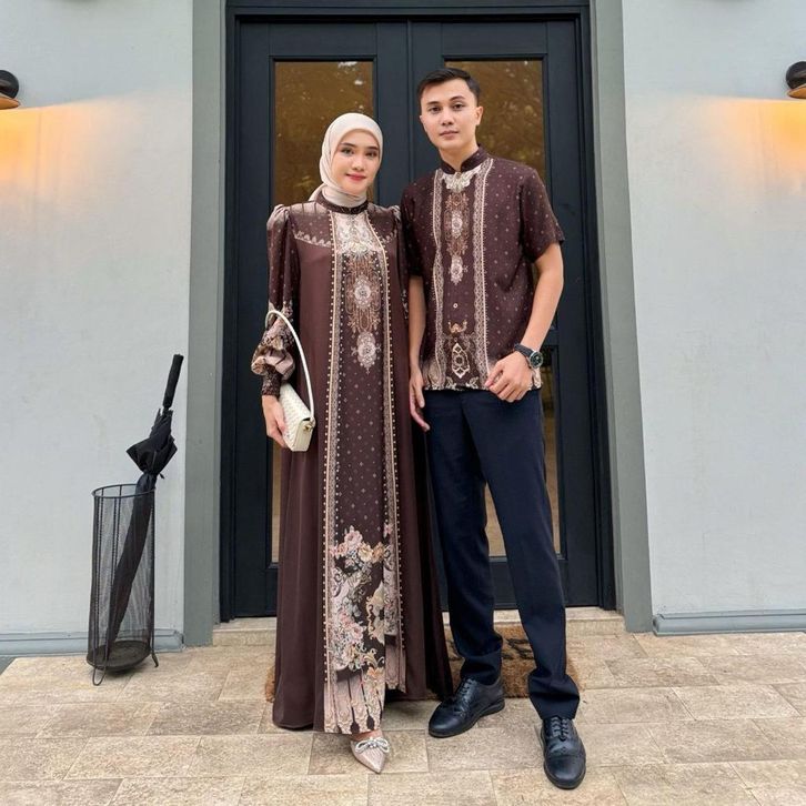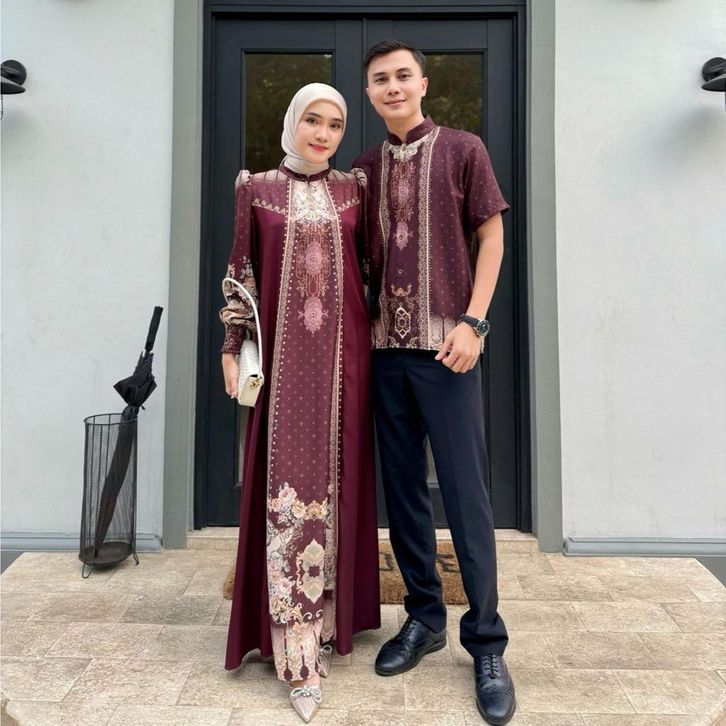 Gamis Lebaran Couple Sarimbit Kayrina Baju Muslim Kondangan Motif Printing