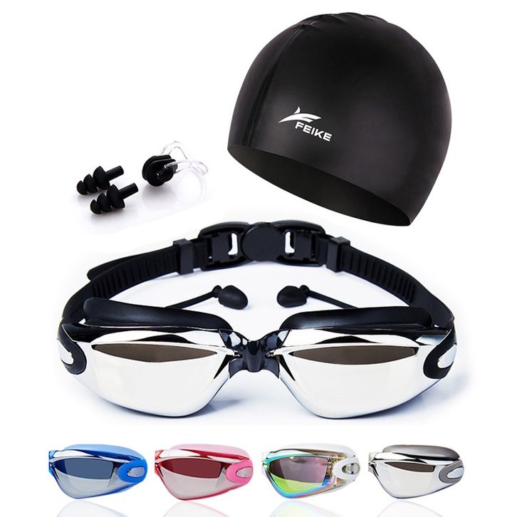 Paket Kacamata renang paket topi renang merk Feike very good quality.