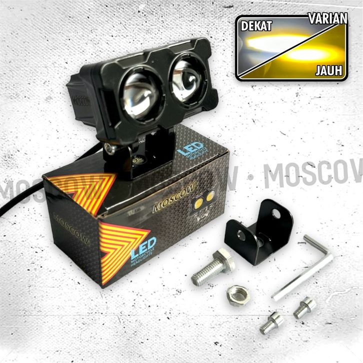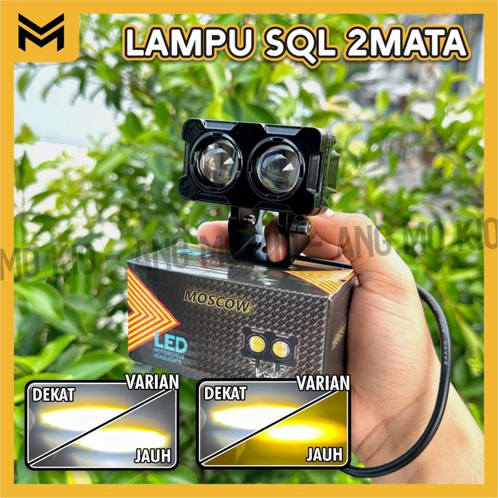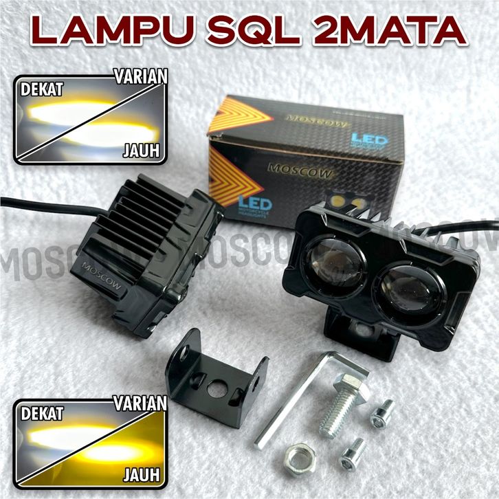 LAMPU TEMBAK LASER SQL 2 MATA MODE HIGH AND LOW ORIGINAL BRAND MOSCOW UNIVERSAL COCOK UNTUK MOTOR DAN MOBIL 2 WARNA PUTI