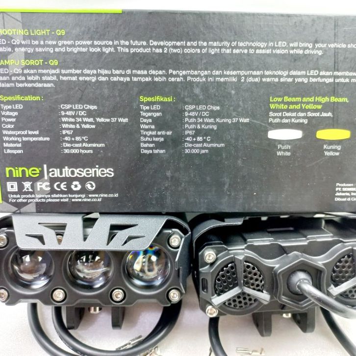 LAMPU SOROT LAMPU TEMBAK LASER Q9 3 MATA 2 WARNA LUMINOS LED NINE HI LOW WHITE YELLOW UNTUK MOBIL DAN MOTOR