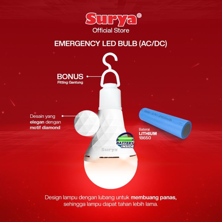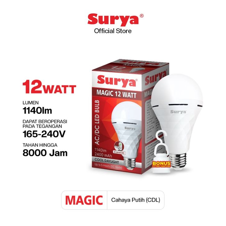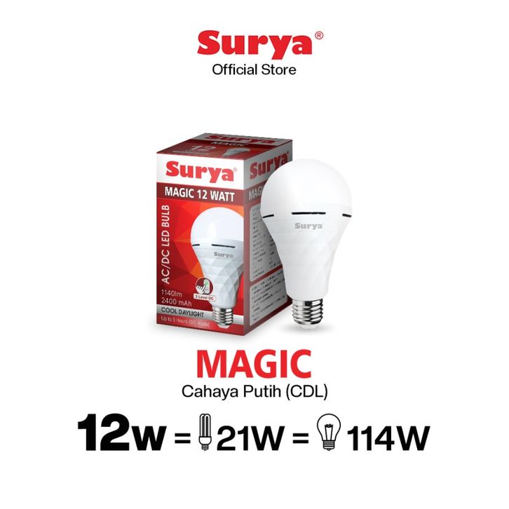 PROMO TERBARU Surya Lampu Emergency Bohlam LED Magic AC/DC 12 Watt Cahaya Putih