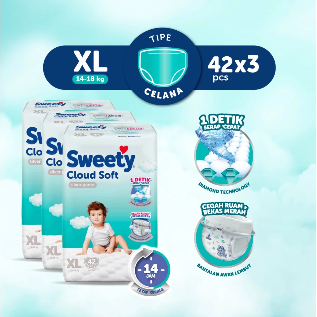 Paket 3 Ball SWEETY PANTS SILVER S66 M60 L54 XL42 XXL32 (3 PACKS) POPOK BAYI anti bocor