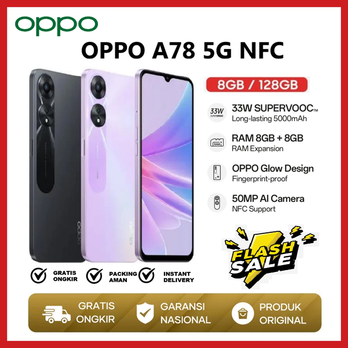 HP OPPO A78 5G 8GB/256GB GARANSI RESMI NFC MediaTek 6833 5G 67W SUPERVOOC AMOLED FHD+ DUAL STEREO SPEAKERS Android 13