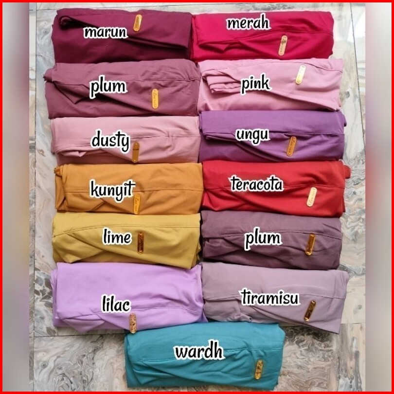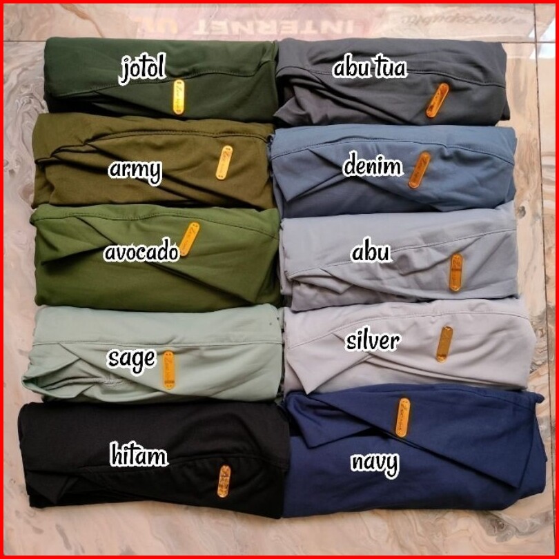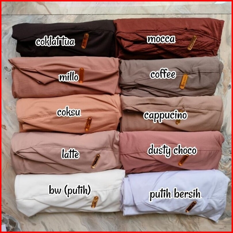 Milo, Sage, Cappucino, Lime, Marun, Plum, Navy, Latte, Tiramisu, Denim, Abu Tua, Kunyit, BW (putih), Abu, Cofee, Wardah, Hitam, Mocca, Ungu, Dusty, Coksu, Salem, Pink, Hijau Tua, Taro, Cokelat Tua, Putih bersih, Olive, gold, Caramel, Jotol, Cream