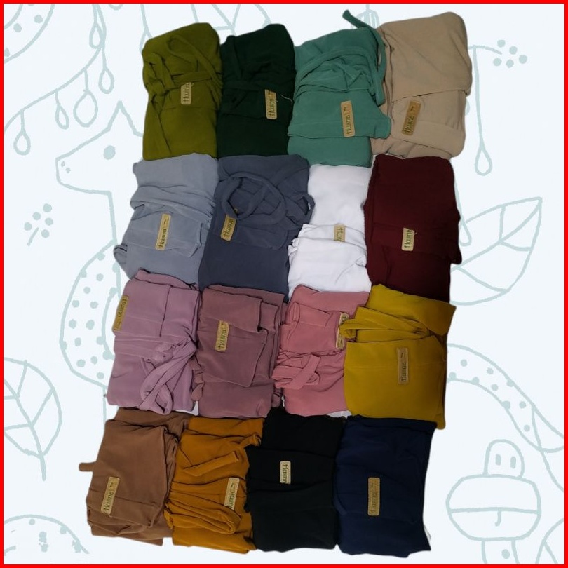 Hitam, Navy, Dusty, Taro, Lime, Gold, Maroon, Lilac, Mocca, Cream, Wardah, Abu muda, Abu Tua, Bottle, H. Army, Sage/mint, Chinos/khaki, Dark Terracotta, Denim, MiLo/choco, Espresso, Teracotta, Army noda titik, Lilac noda