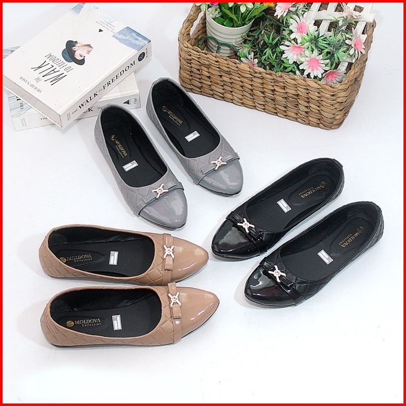 Flatshoes Wanita Sepatu Balet Motif Kekinian Terbaru Spatu Flat Shoes Cewek Slip On Slop Hitam Kerja Kantor Karet Kulit