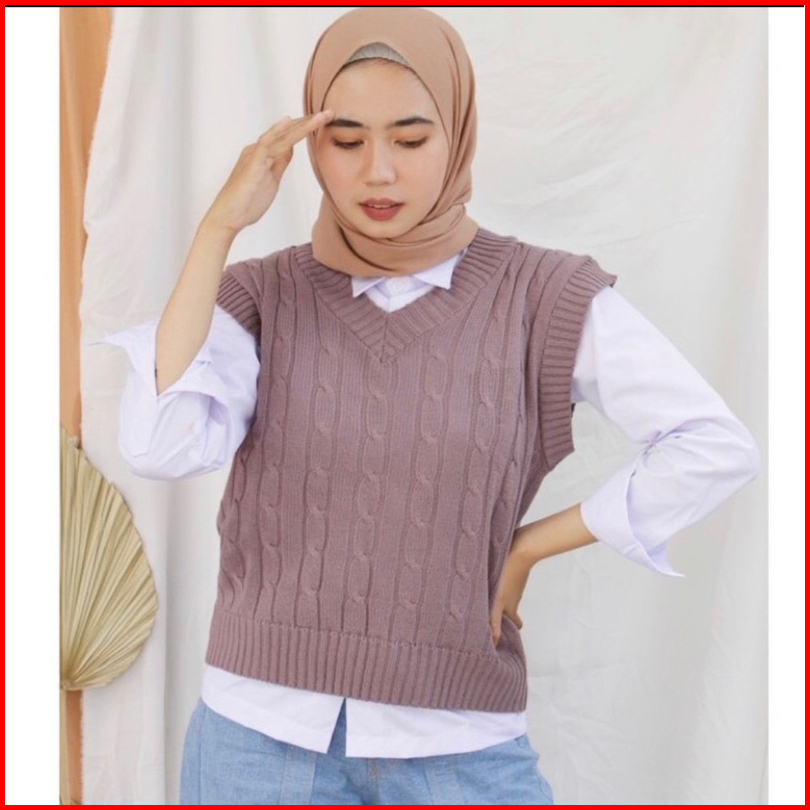 Vest Rompi Rajut Tebal Cable Baju Atasan Wanita Premium
