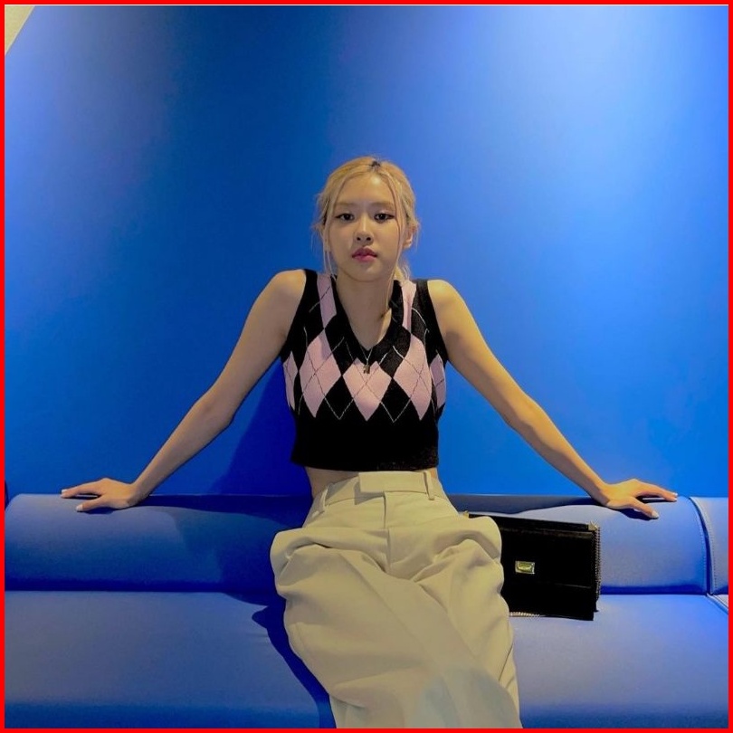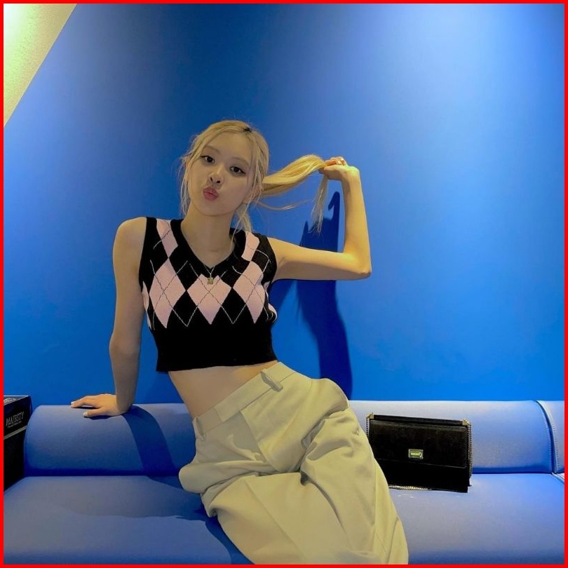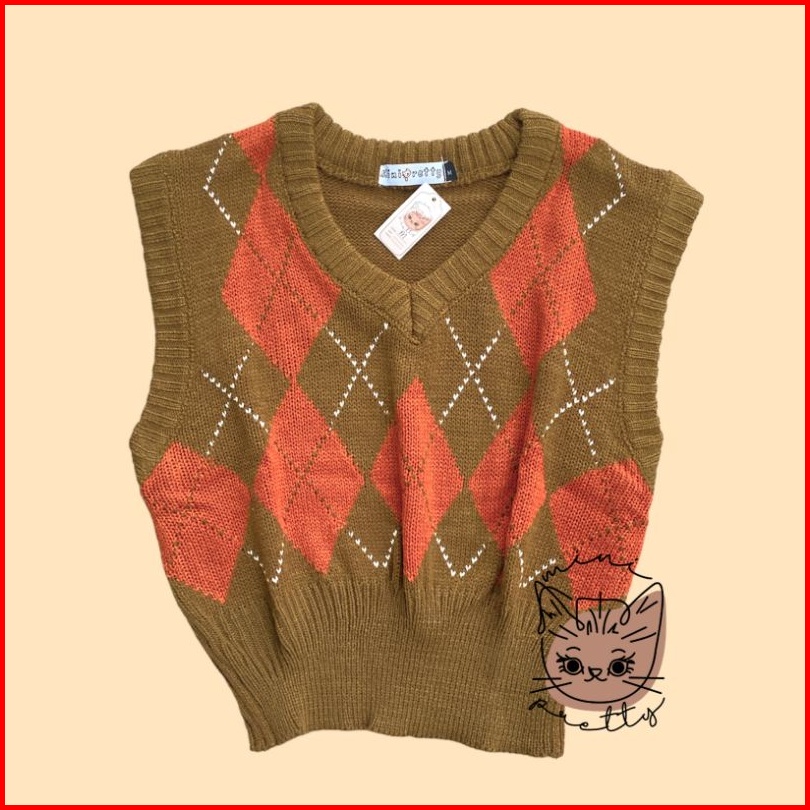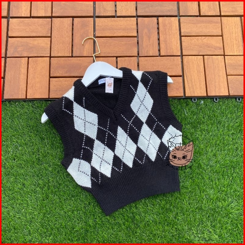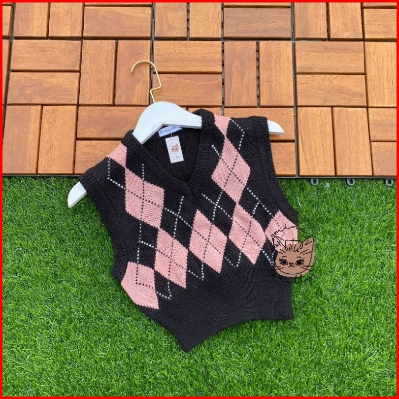 Rompi Rajut Crop Rose Blackpink Argyle Vest Knitted