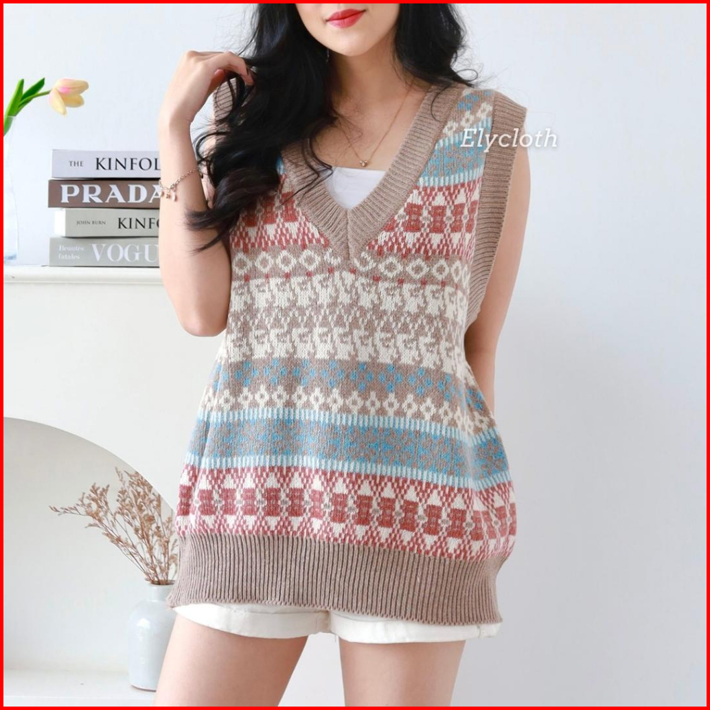 Elycloth Ivory Vest Vest Rompi Rajut Wanita Premium Knit