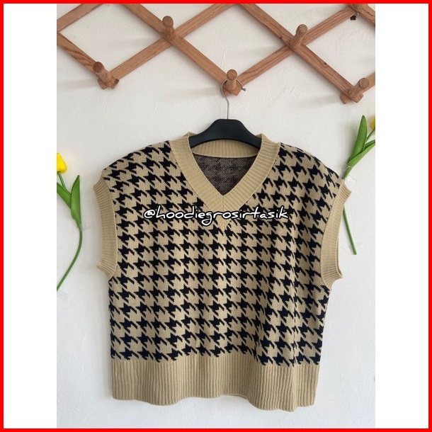 Vest Rajut Korea - Rompi Rajut Motif - Vest Houndstooth Dijamin 100 Premium Hoodiegrosirtasik