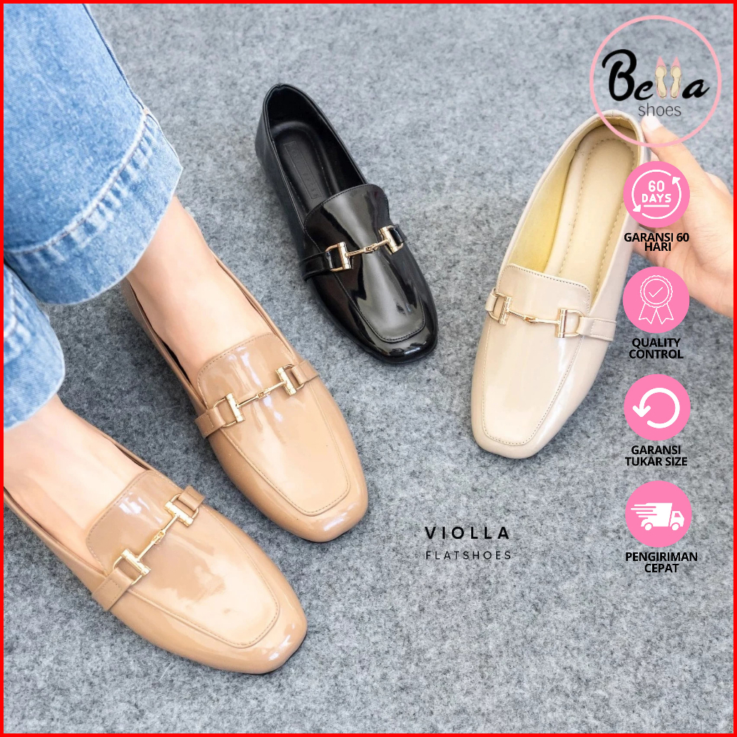 Bellashoesjkt Violla Flatshoes Kantor Glossy Wanita Daily