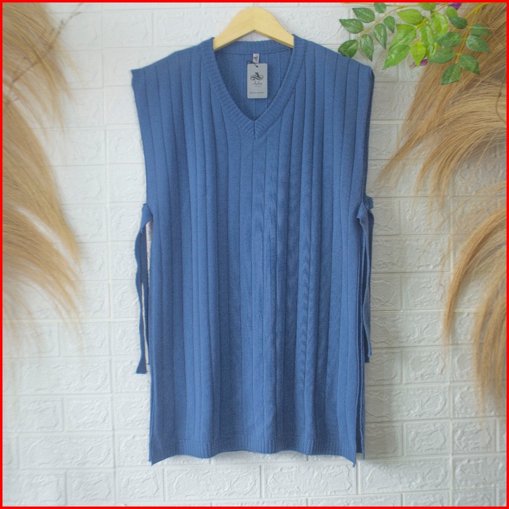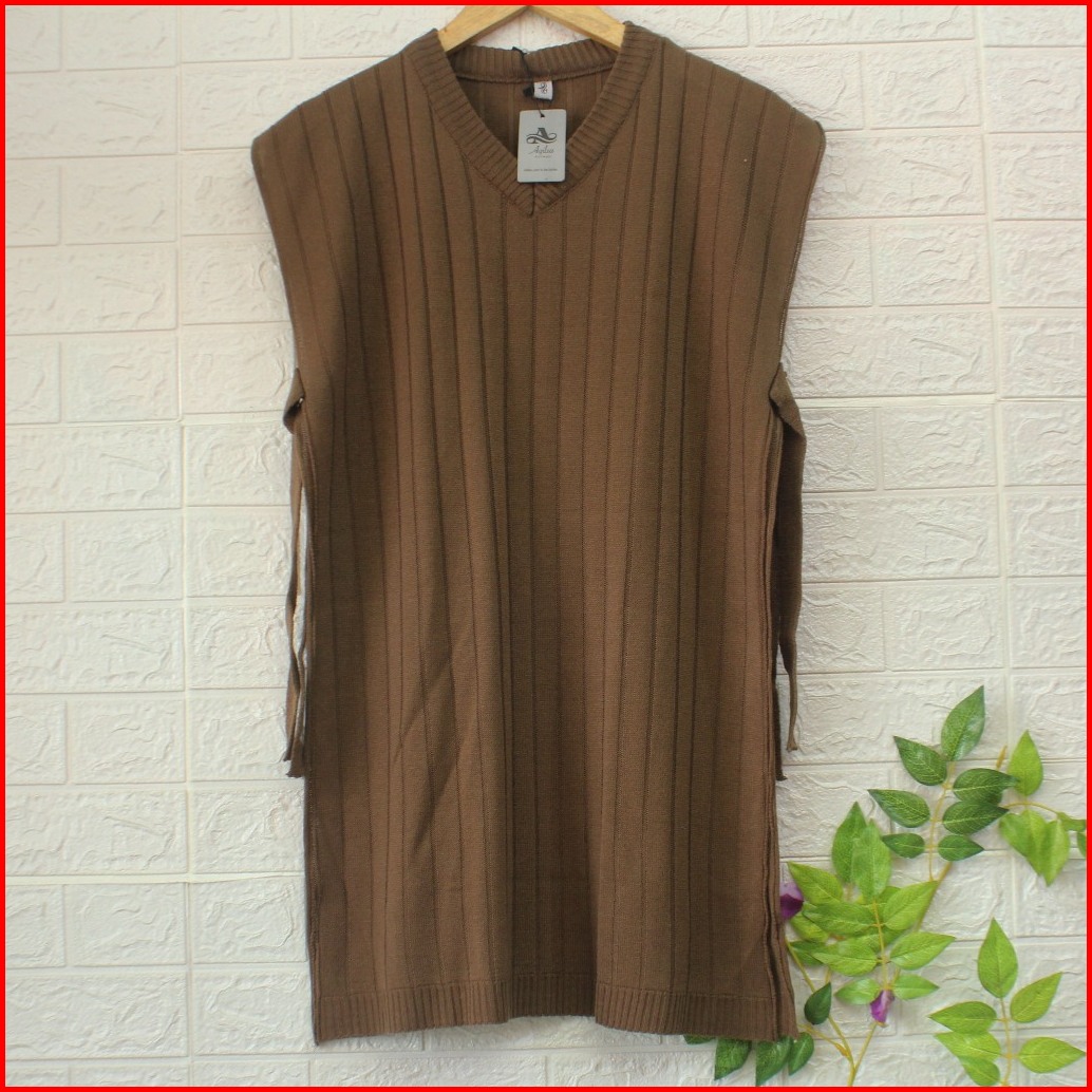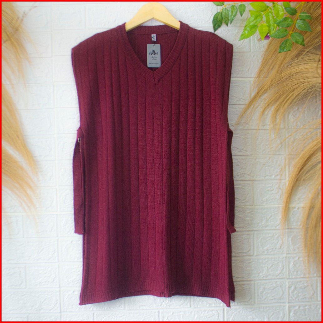 Vest Rajut Salur Kerah V Panjang Rompi Rajut Premium Vest Rajut Oversize Panjang