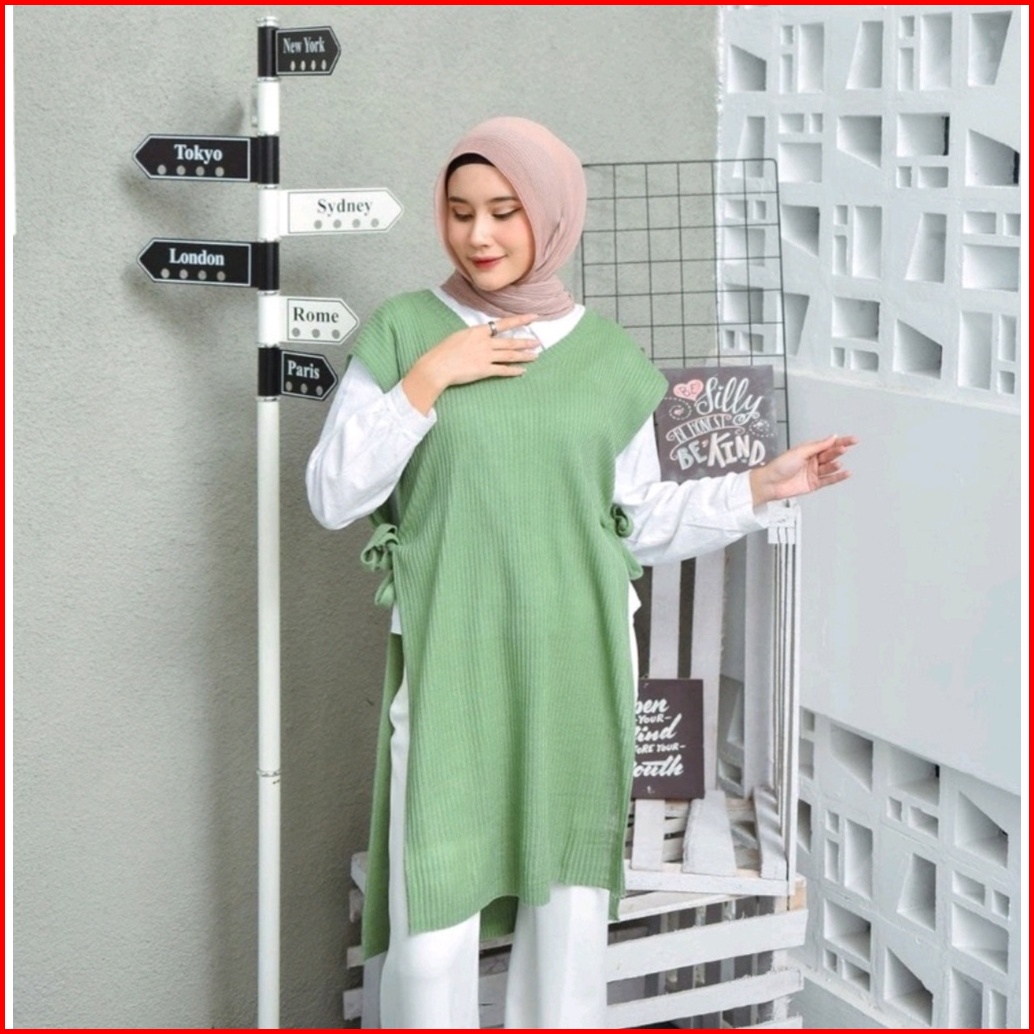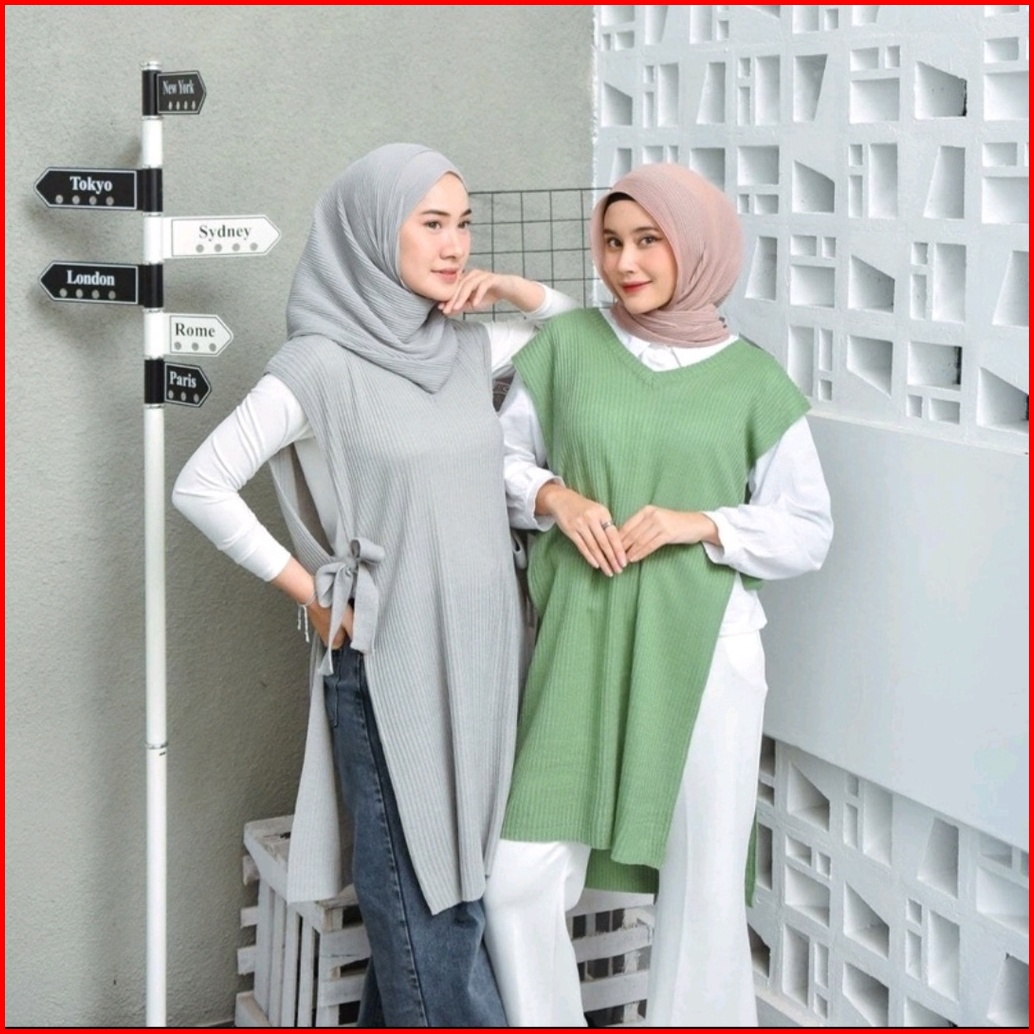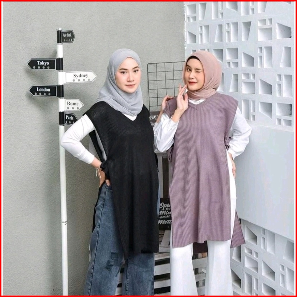 Vest Rajut Salur Kerah V Panjang Rompi Rajut Premium Vest Rajut Oversize Panjang