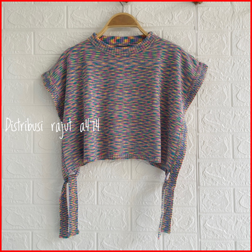 Willy Vest Crop Rajut Tali Samping Warna Angkasa Wanita