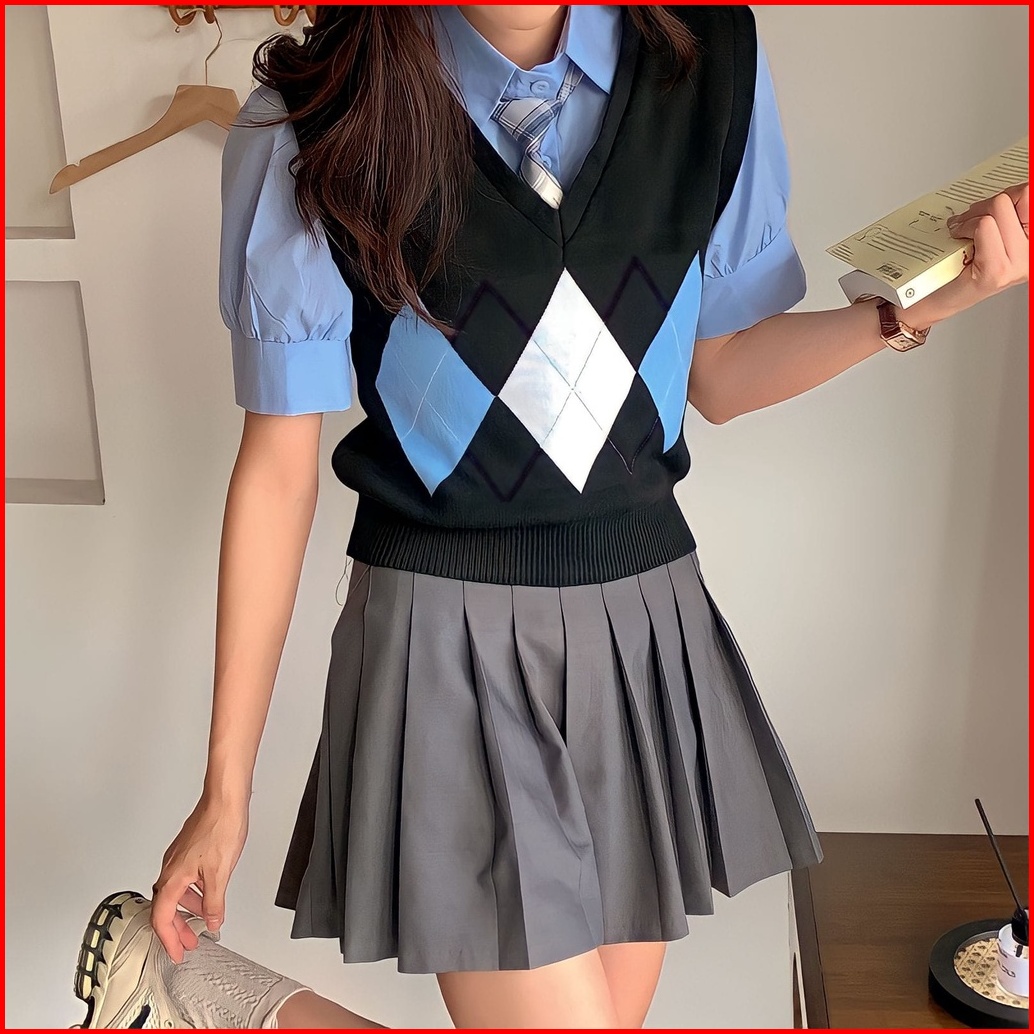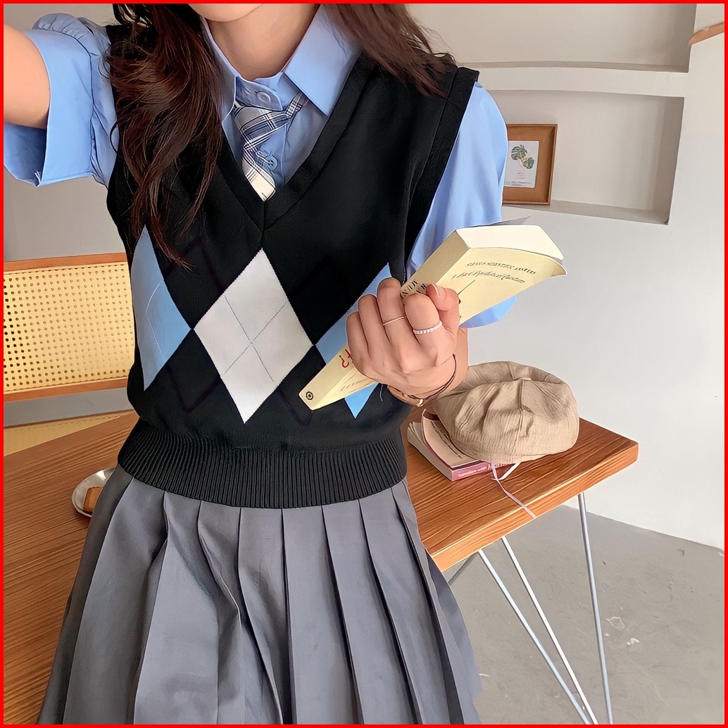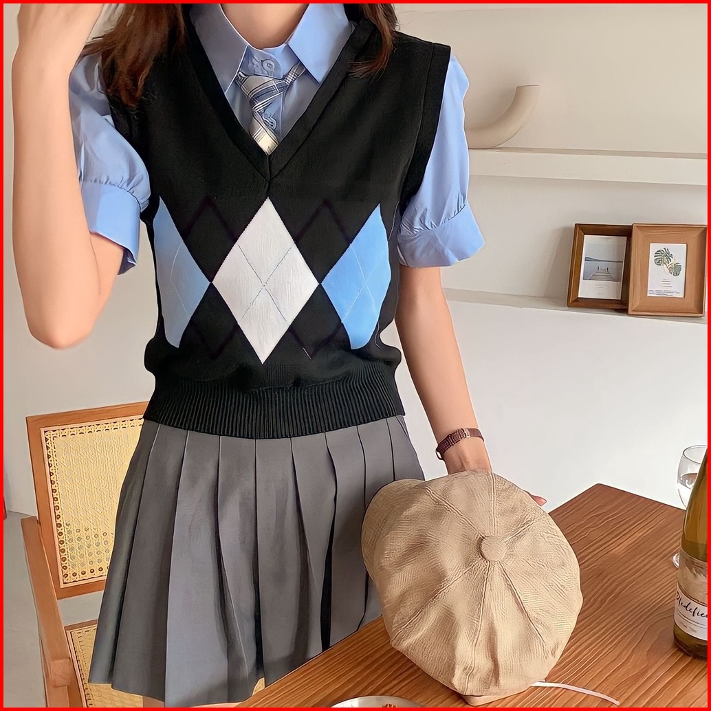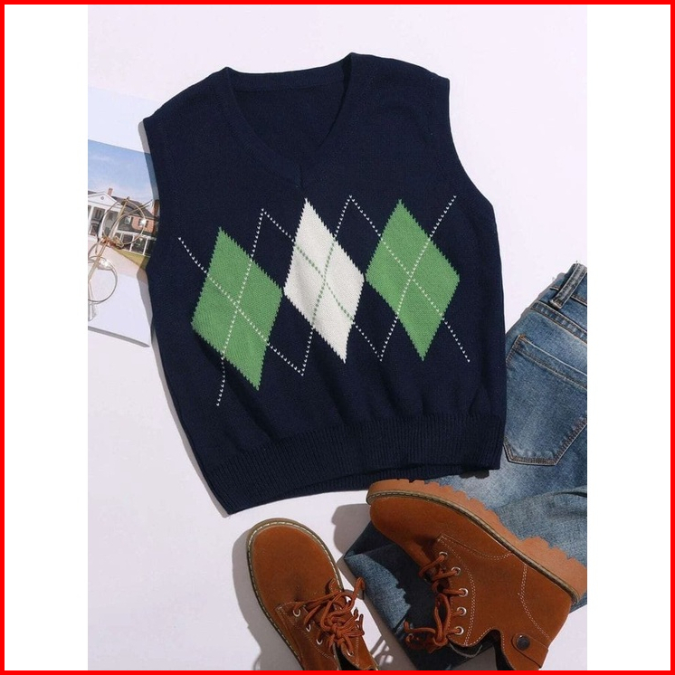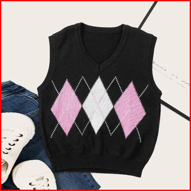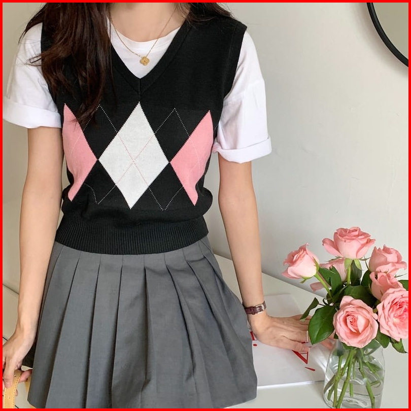Rompi Rajut Komputer Korean V-neck There Shadow Pasti Rajut