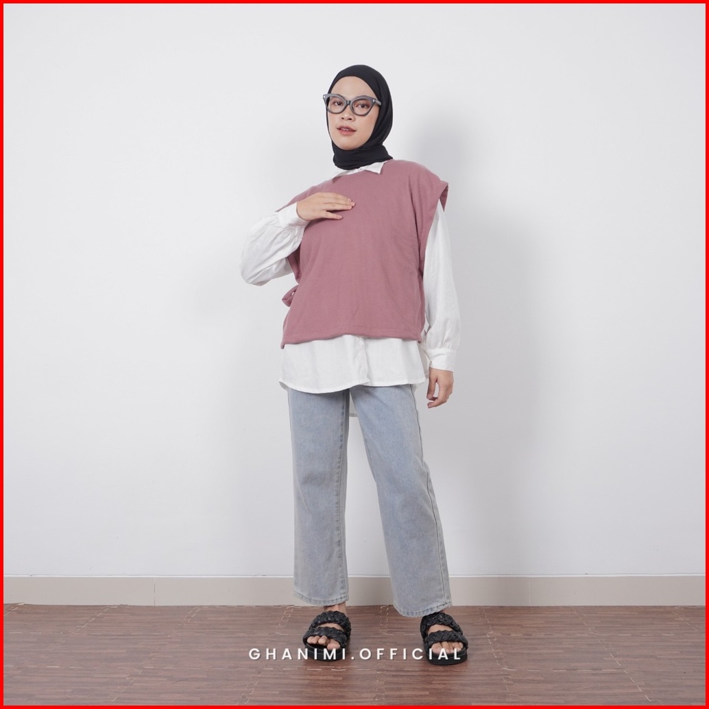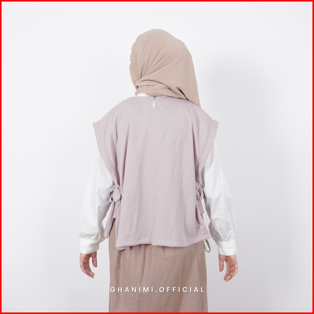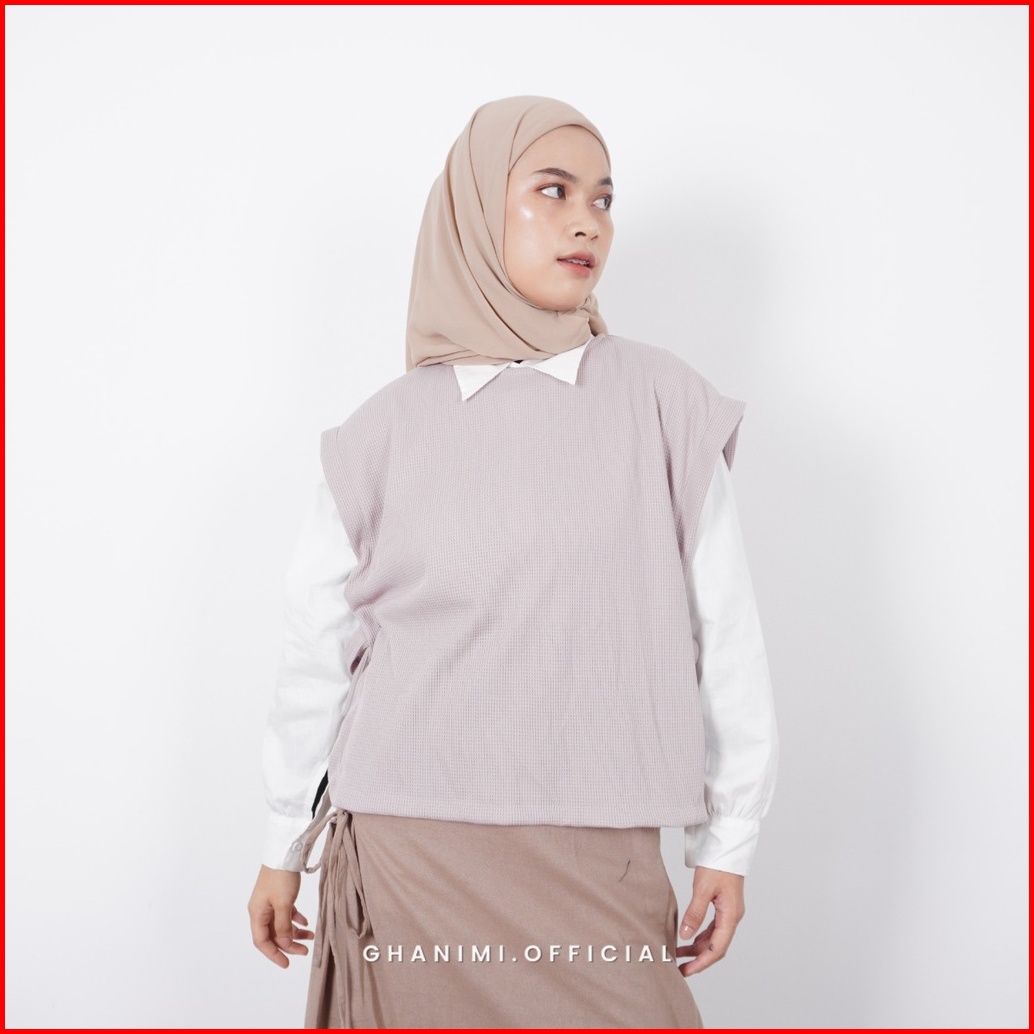 Ghanimi - Kimmy Vest Rompi Lengan Pendek Rajut Vest Kekinian Atasan Crop Tanpa Lengan Outer Knit Waffle Casual Formal Ou