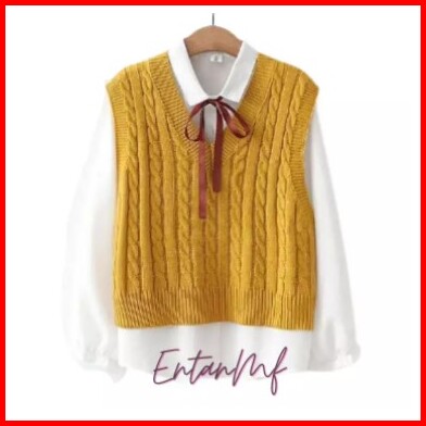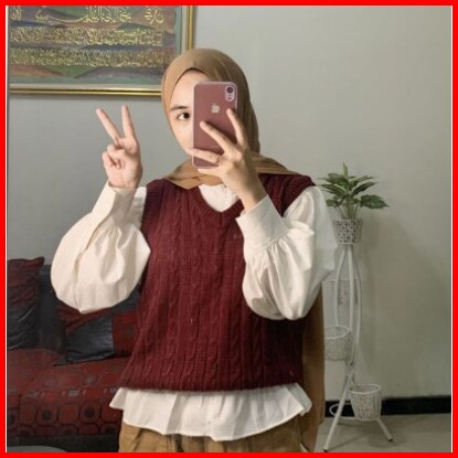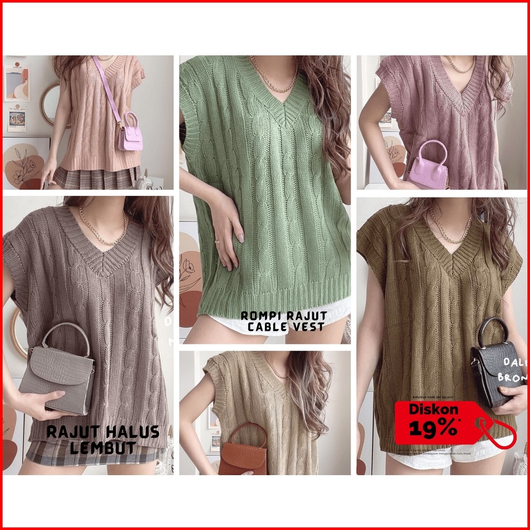 Zahra - Atasan Wanita Rompi Cable Rajut Tebal Cable Knit Vest
