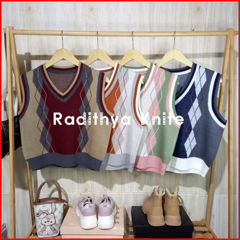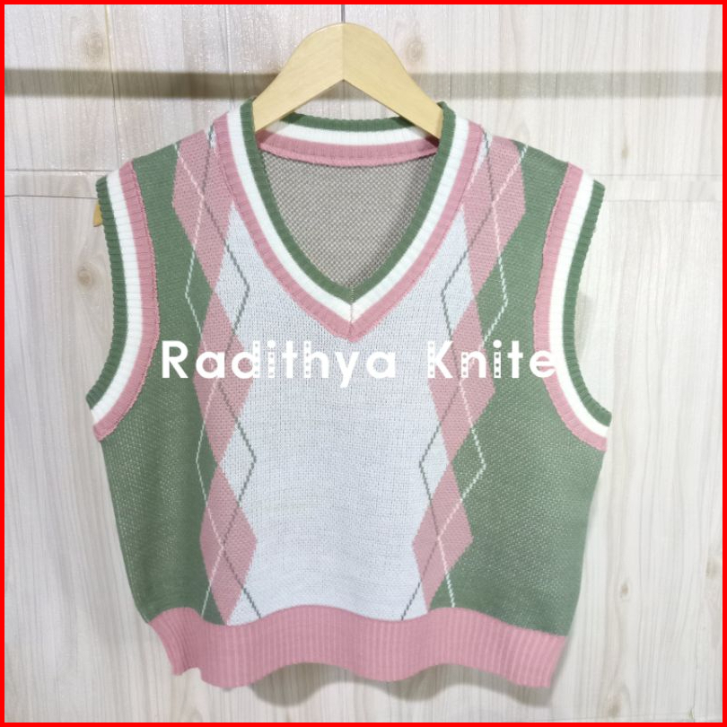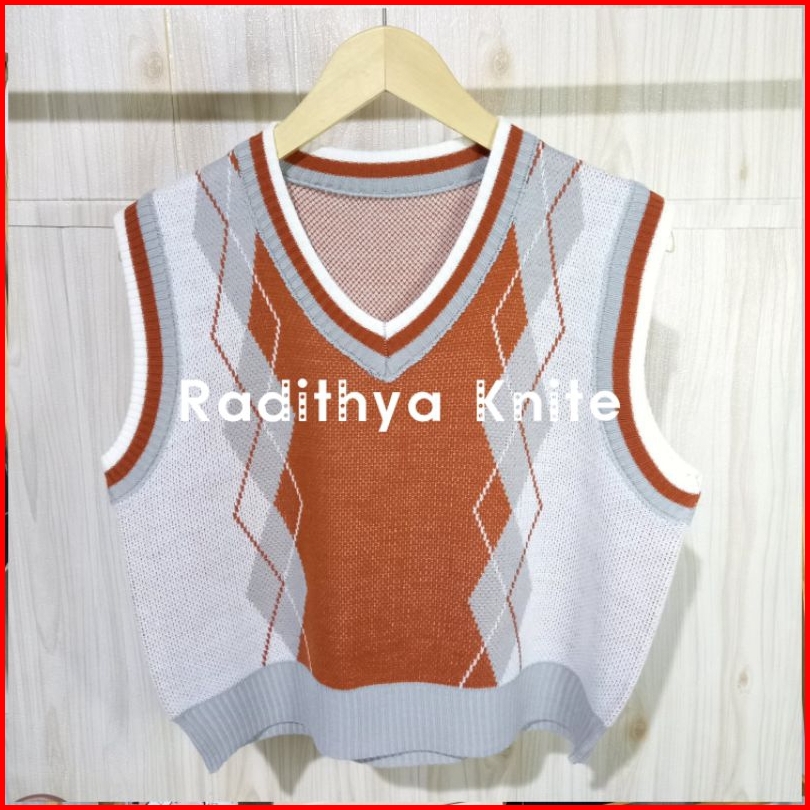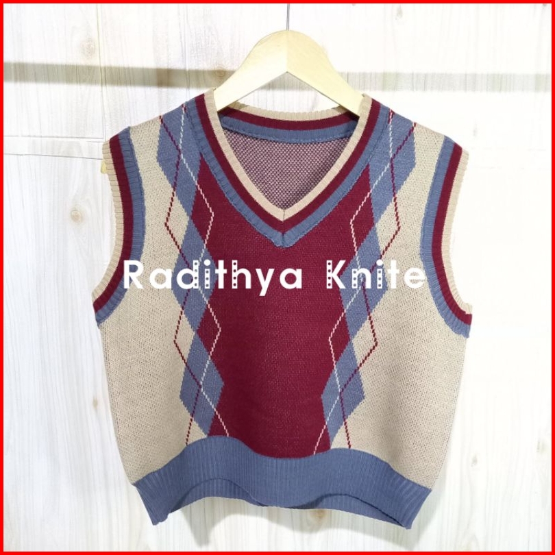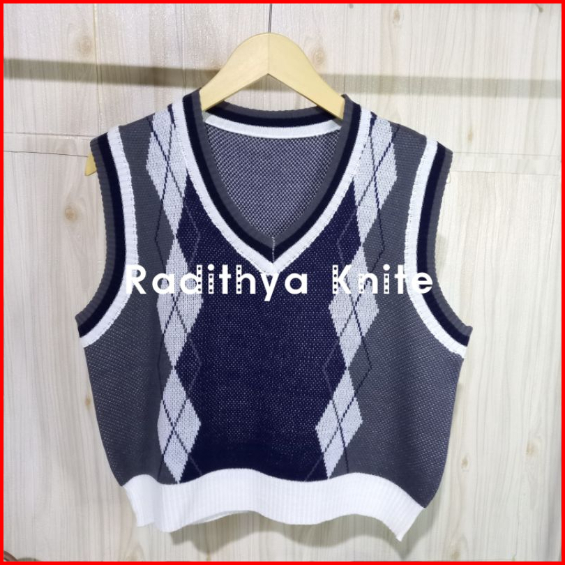 Rompi Rajut V Neck Belah Ketupat-v Vest Rhombus