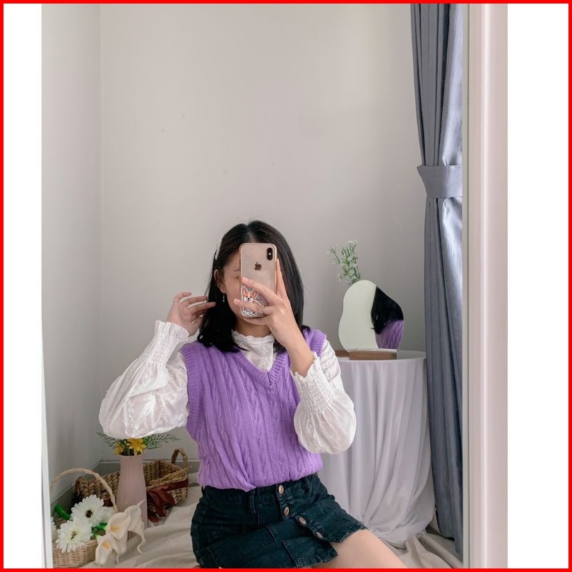 Rosita Cable Knit Sweater Outer Vest Rompi Rajut Street Style Tanpa Lengan