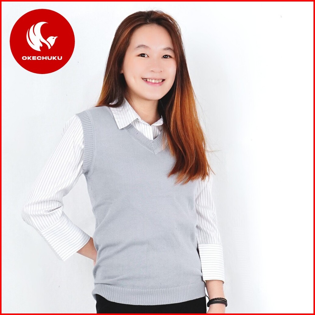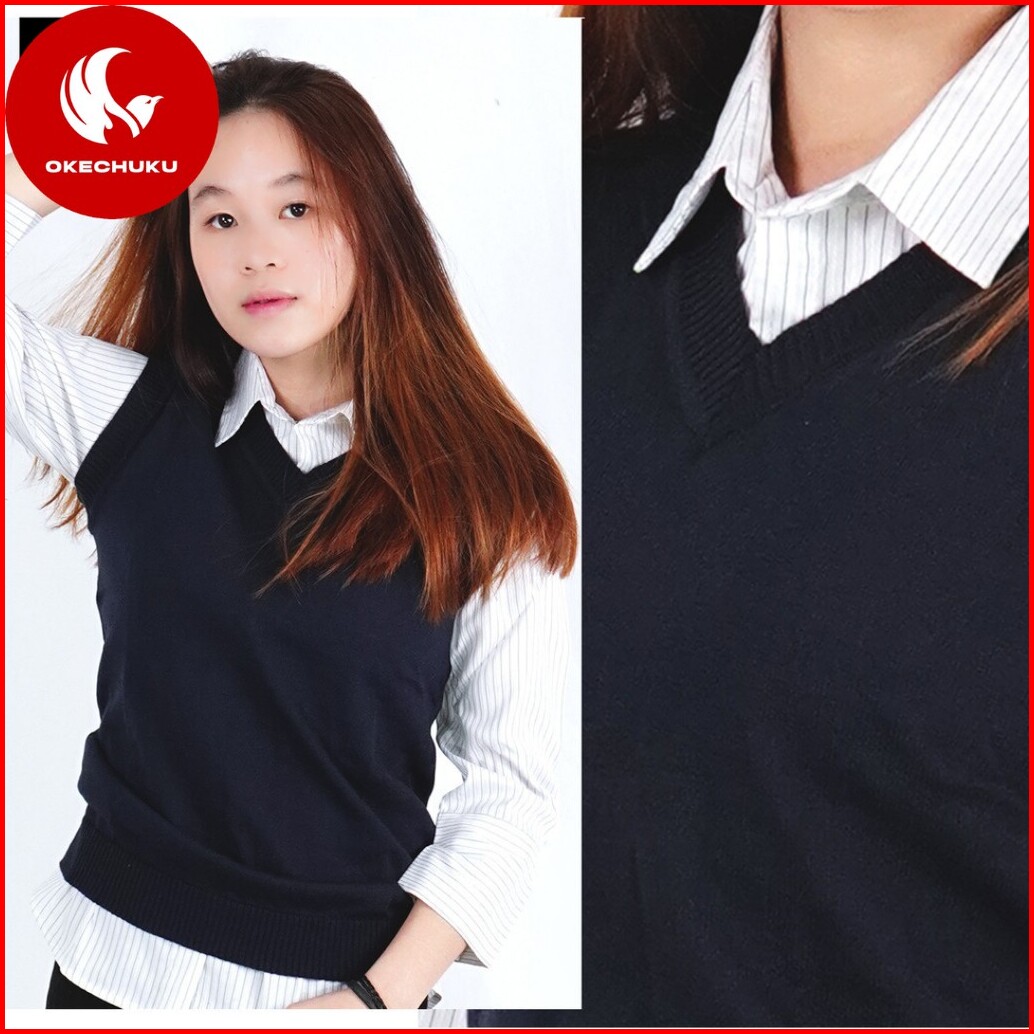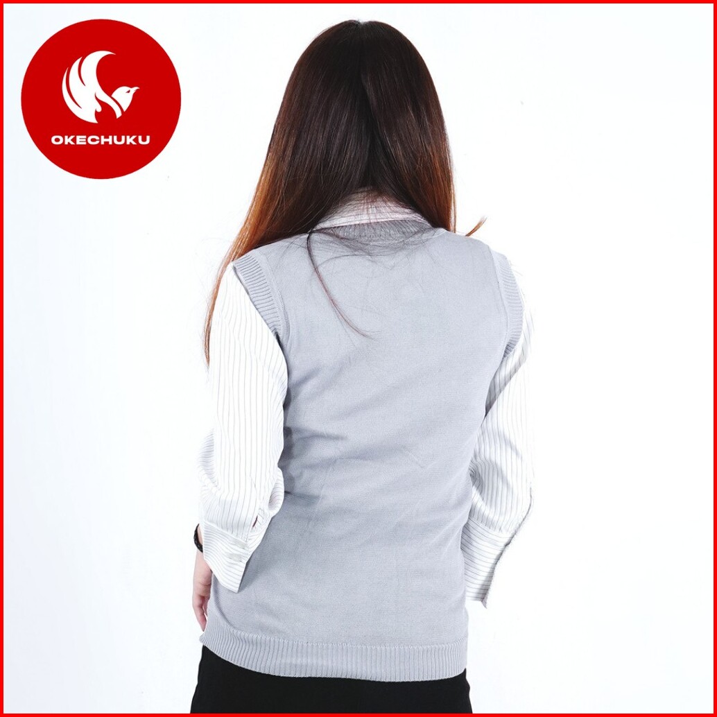 Okechuku Rompi Rajut Wanita Model Polos V Neck Knit Vest Rompi Seragam Sekolah