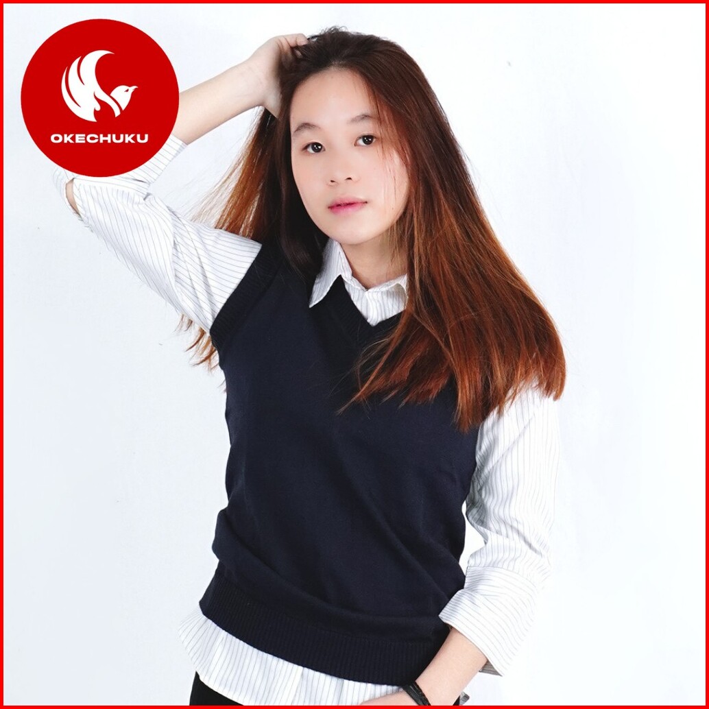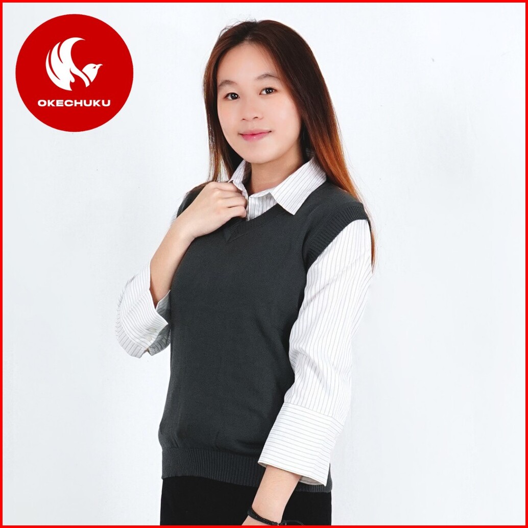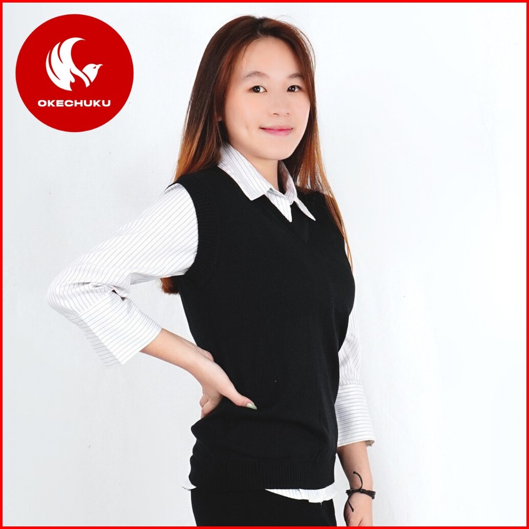 Okechuku Rompi Rajut Wanita Model Polos V Neck Knit Vest Rompi Seragam Sekolah