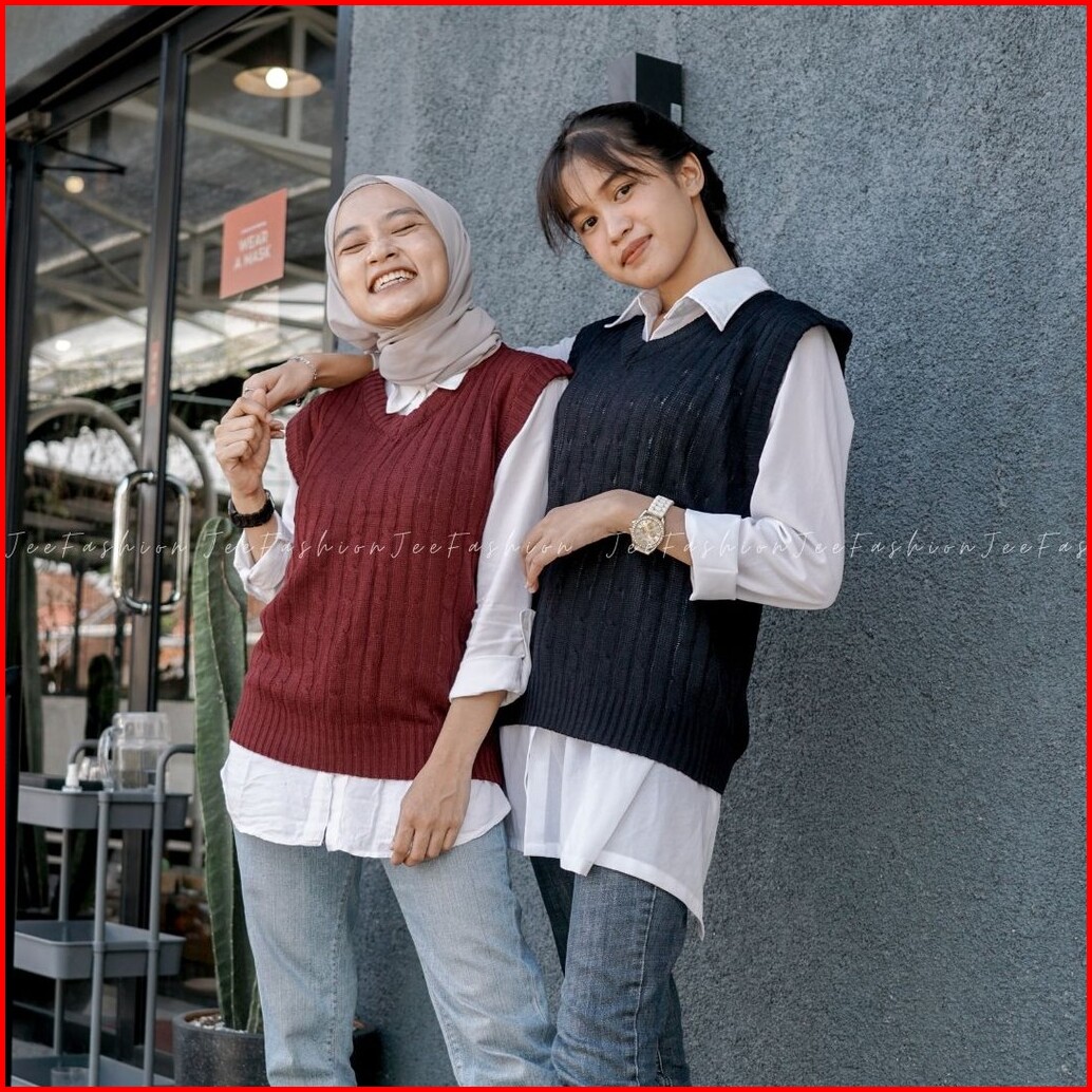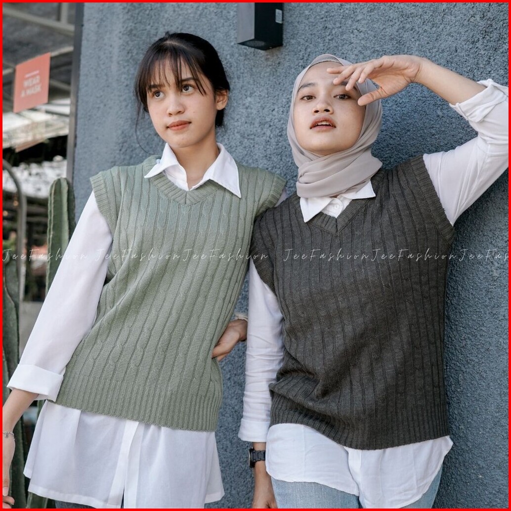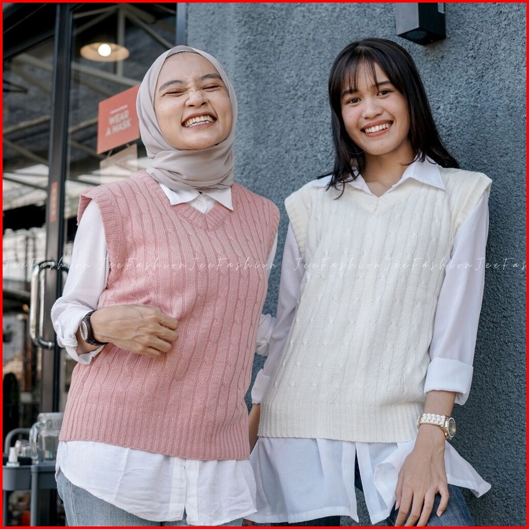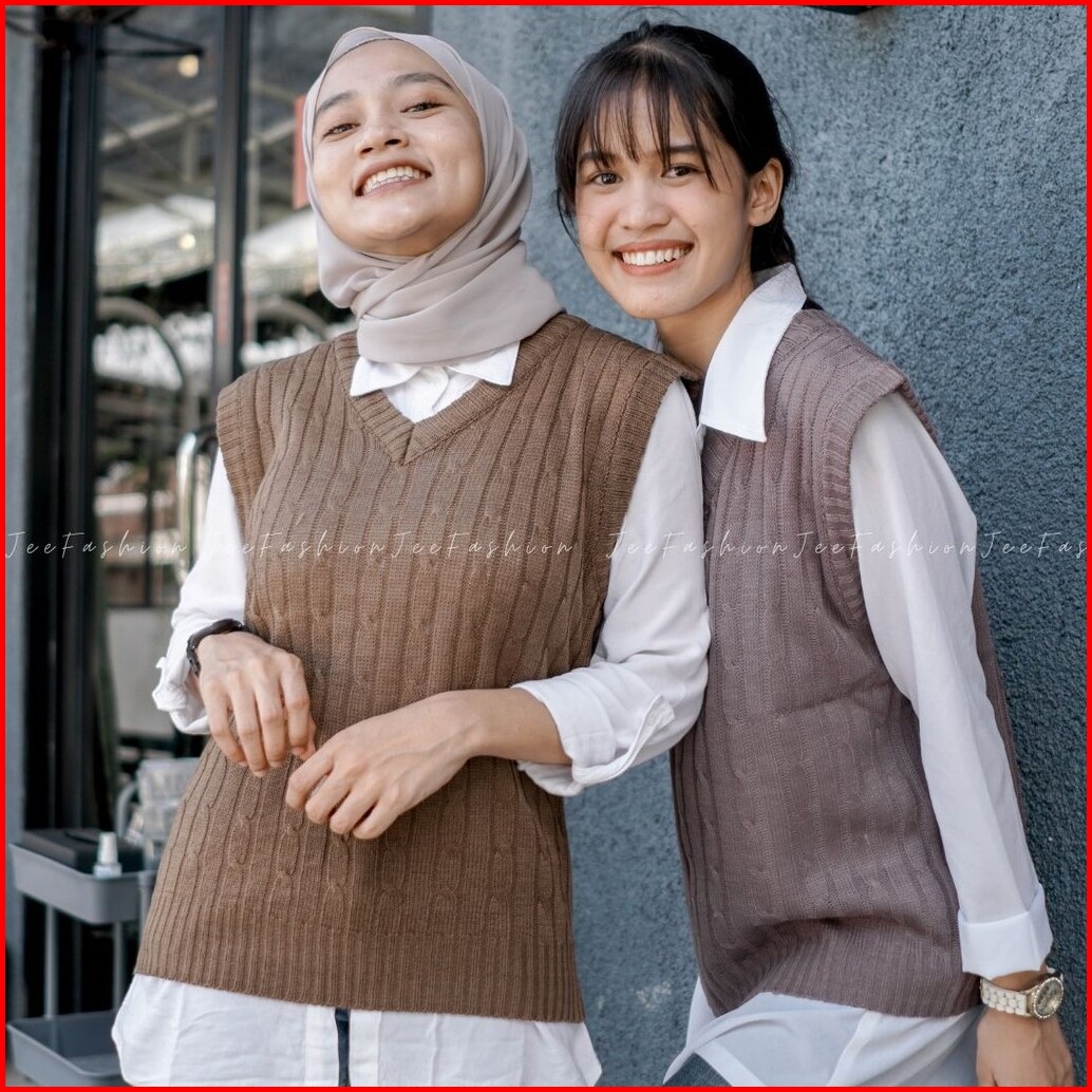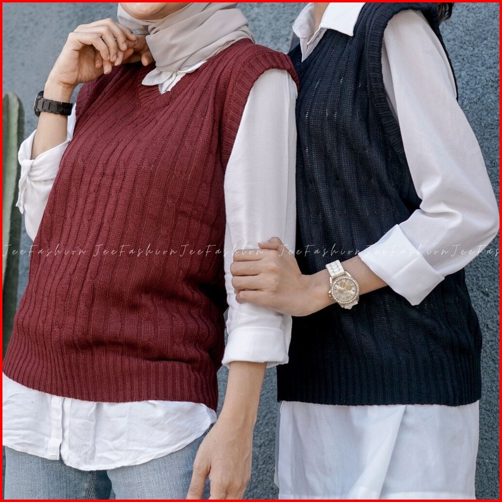 Rompi Rajut Atasan Wanita Motif Kabel 7 Get Cable Knit Vest Outer Tebal Premium