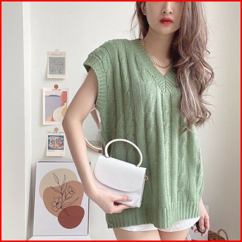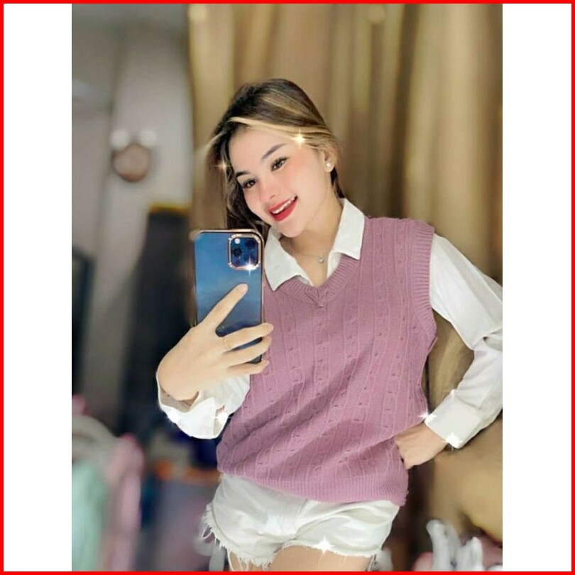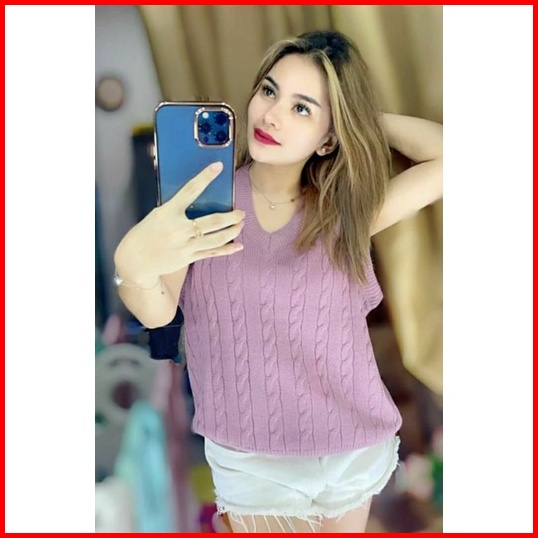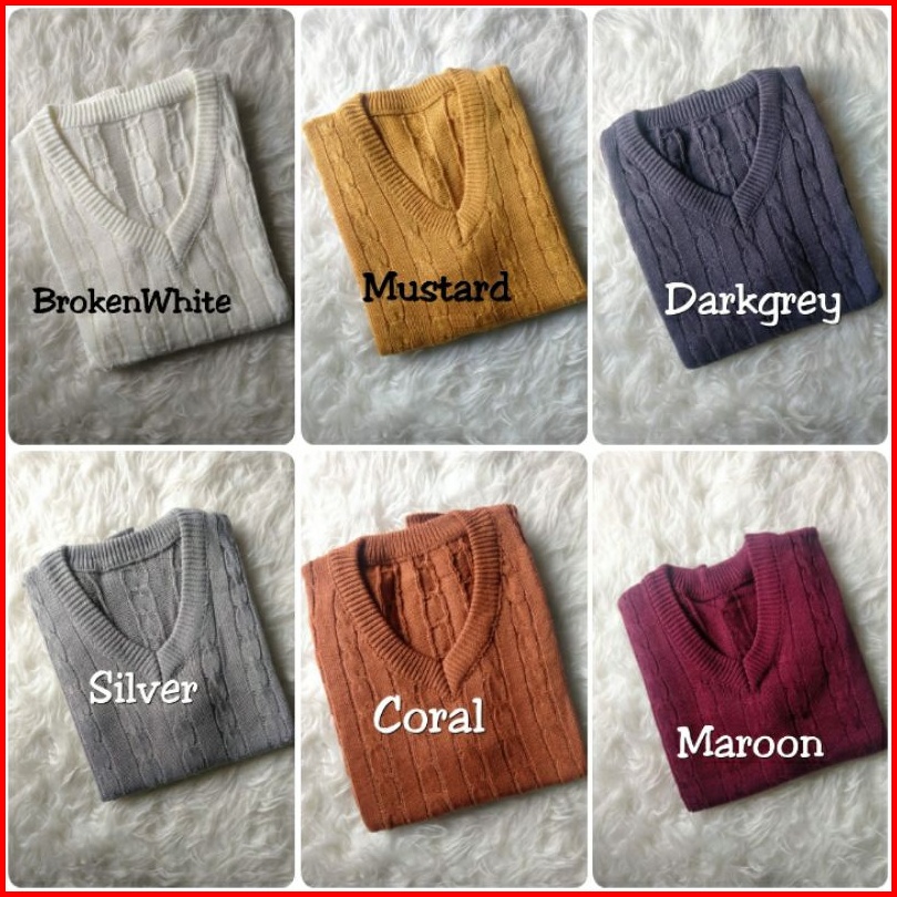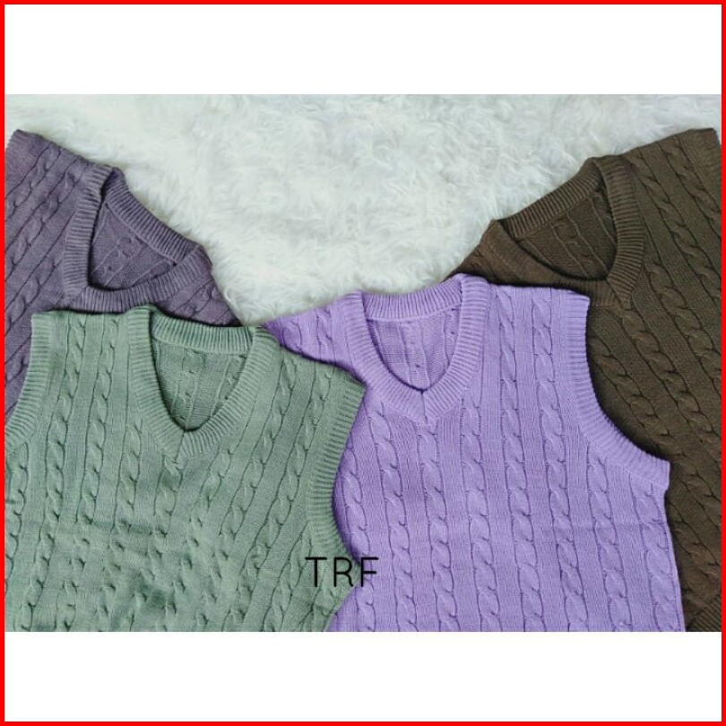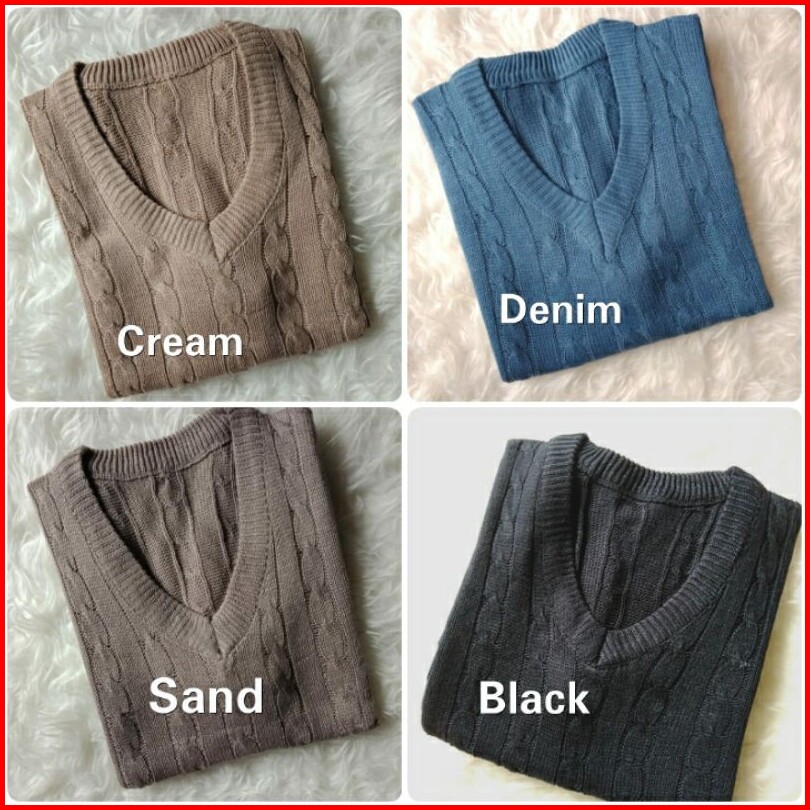 Rompi Cable Rajut Kepang V Neck Delmi Vest Knit