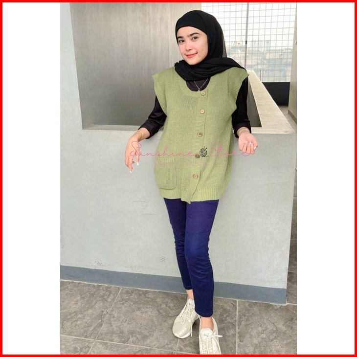 Vest Rompi Wanita Kancing Samping Rajut Tebal Premium