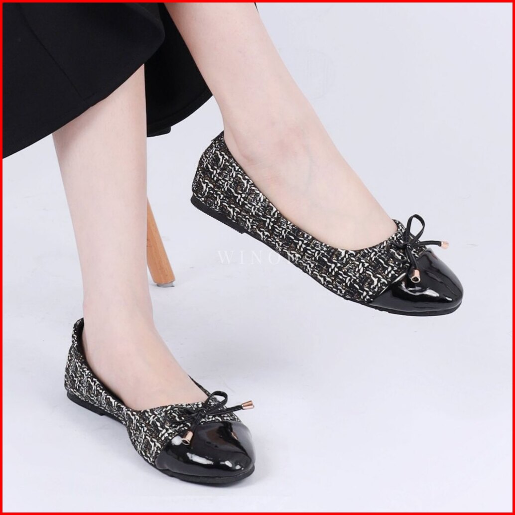 Winod Balika Flatshoes Sepatu Kerja Kantor Wanita Model Tweed Kekinian Daily