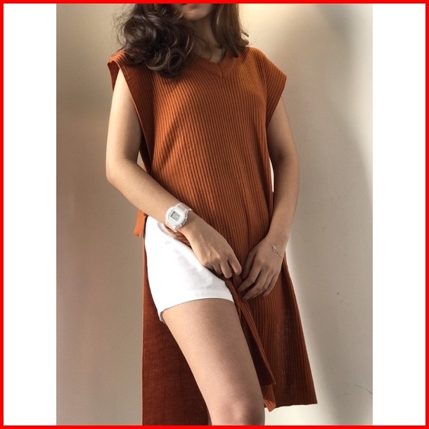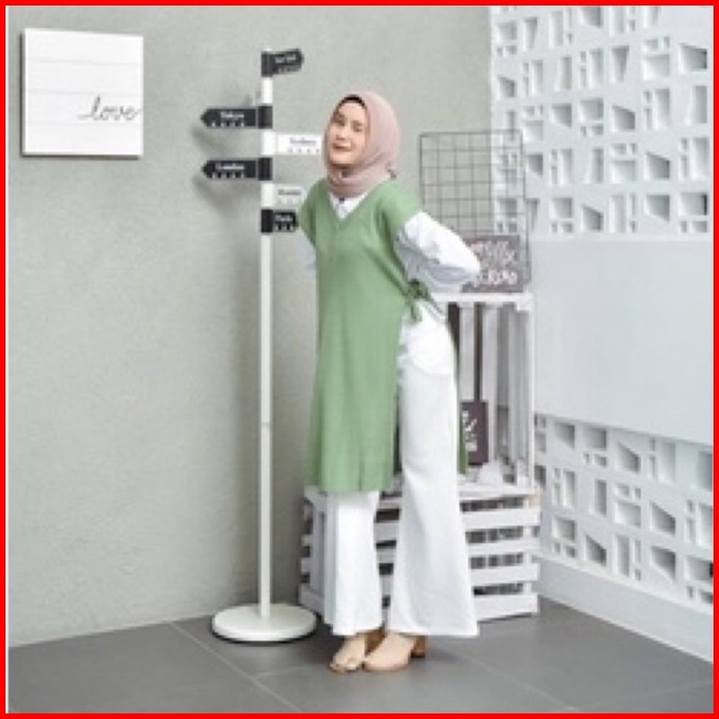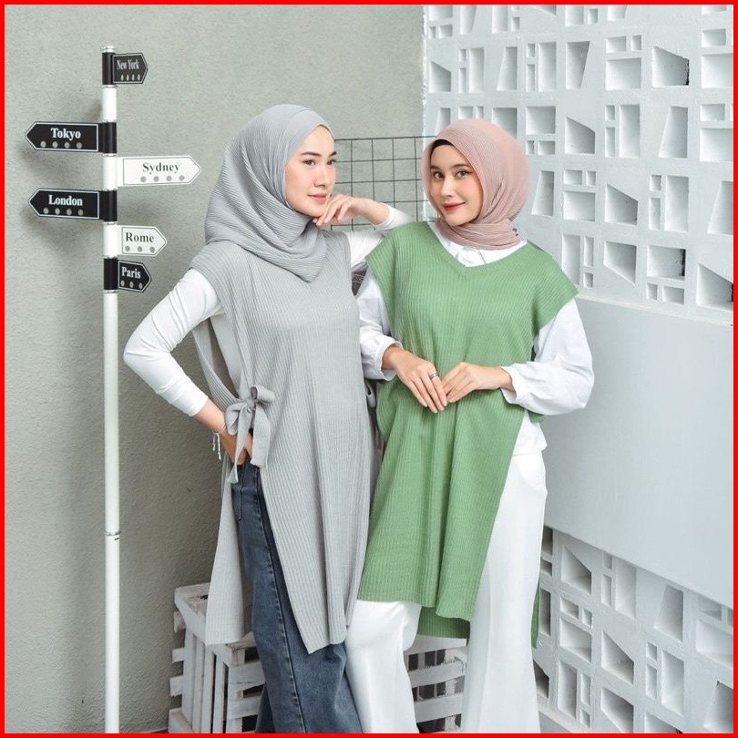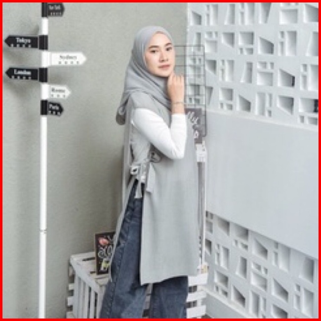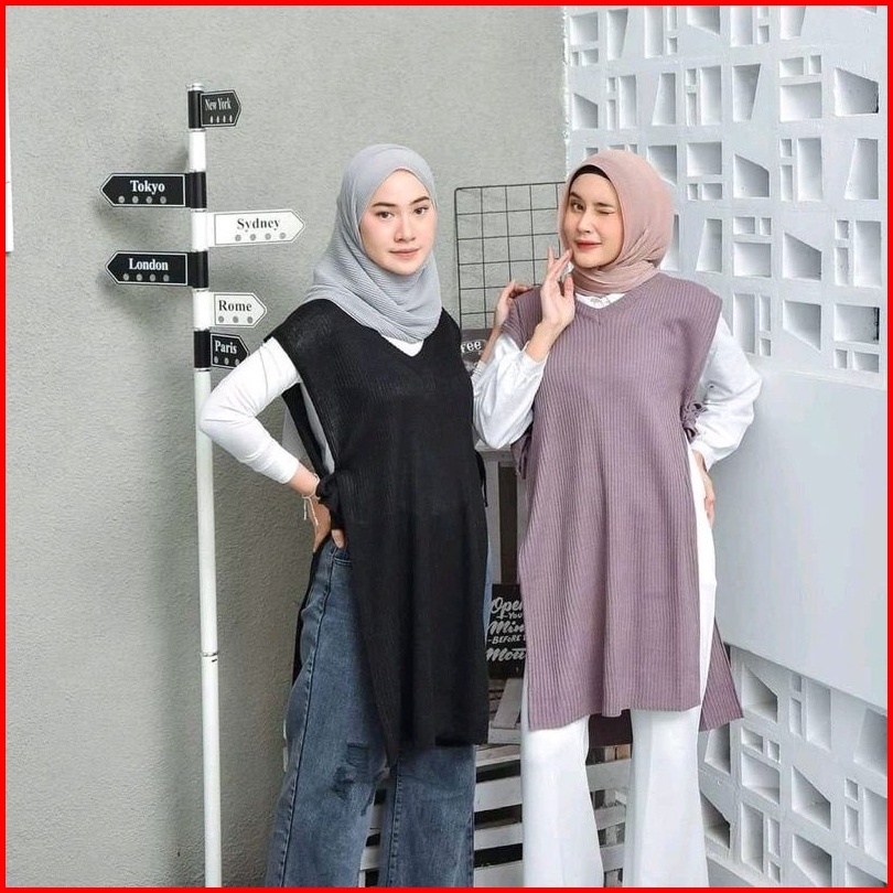 Outer Rompi Long Tunik Vest Rajut Tali Wanita