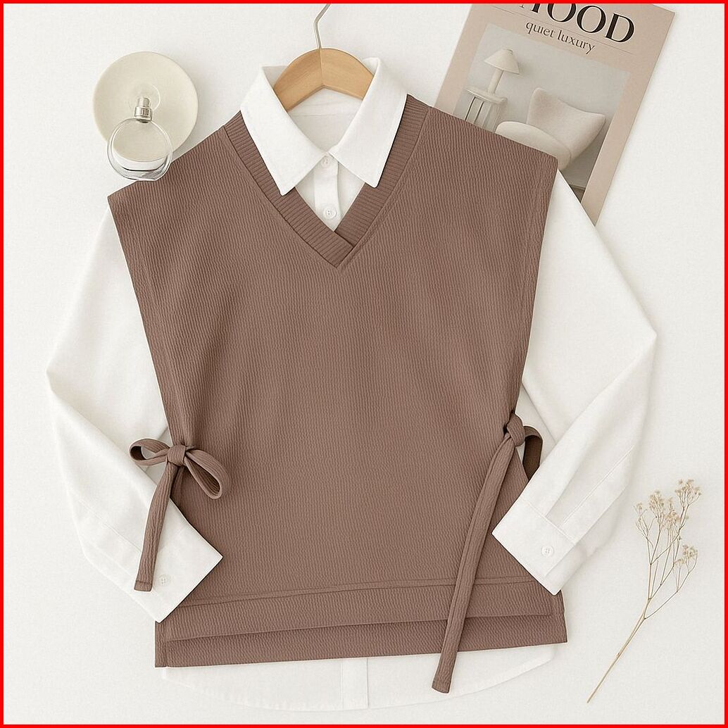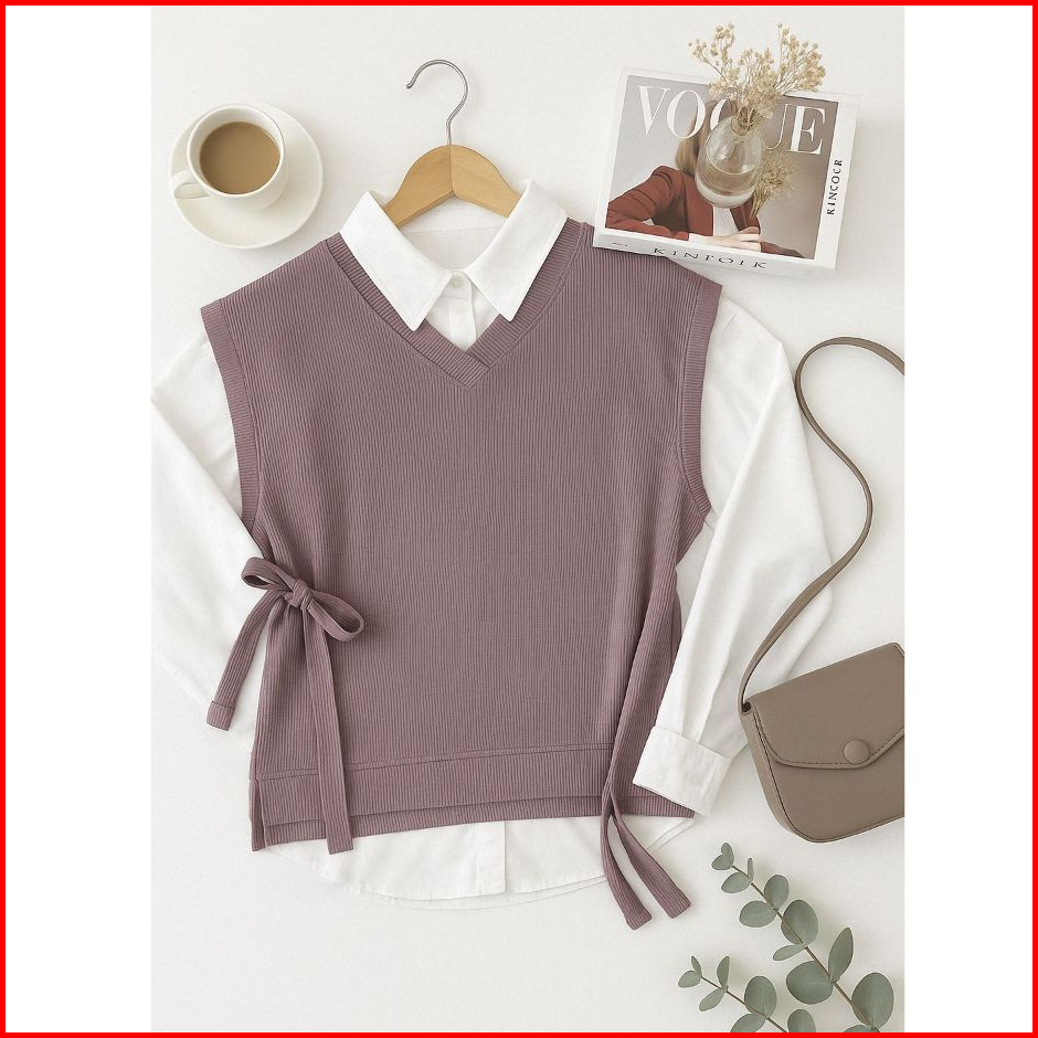 Dailyofprincess Delmi Vest Wanita Knit Rompi Rajut V-neck Free Size