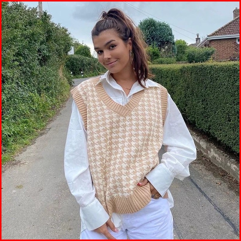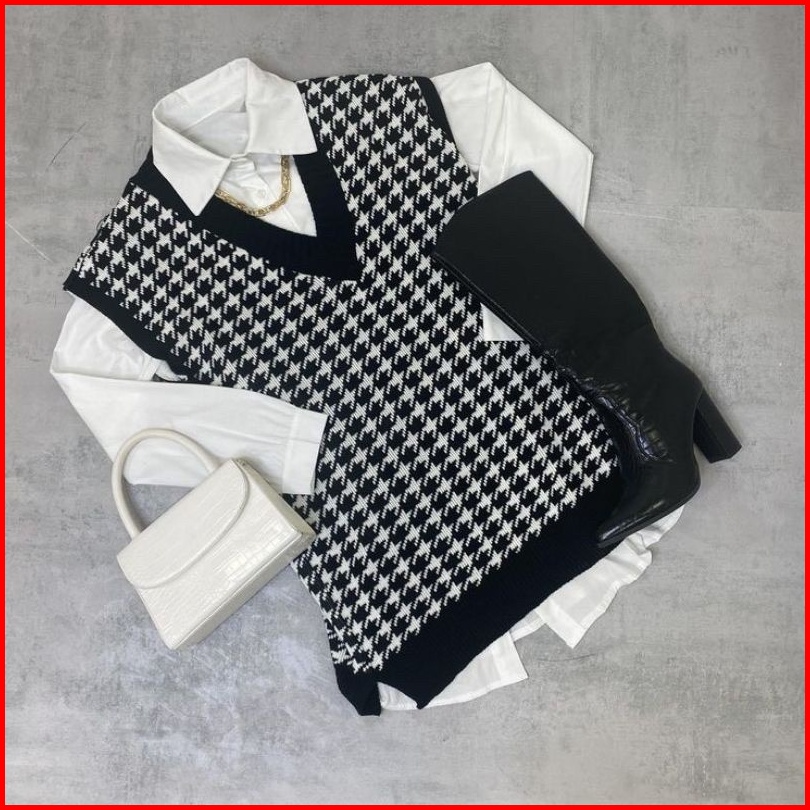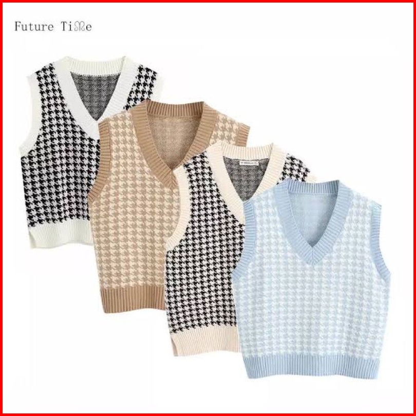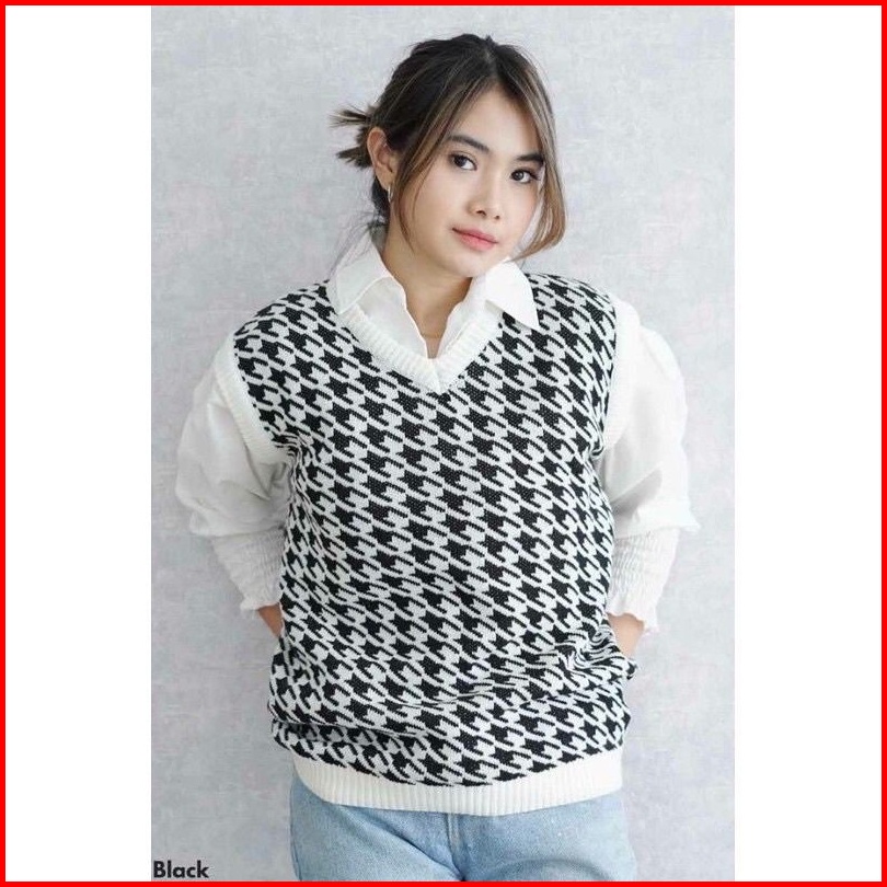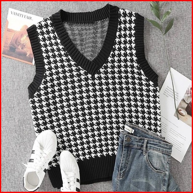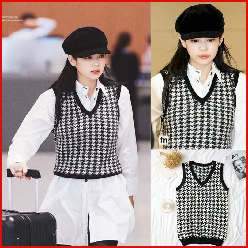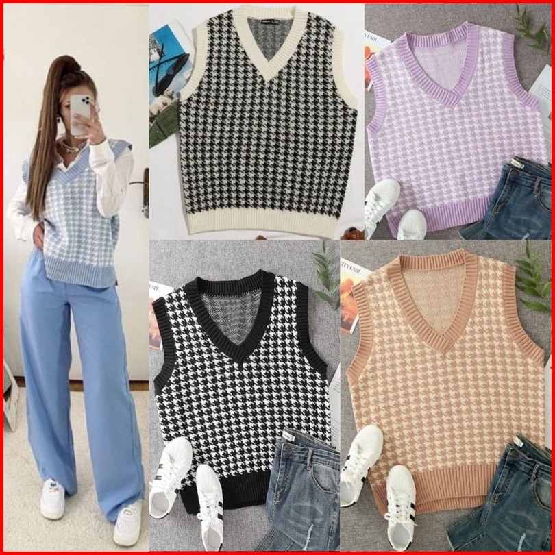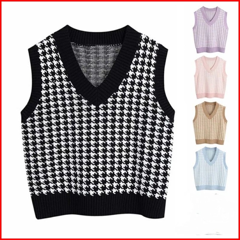 Houndstooth Vest Rompi Rajut Jennie Vest Rajut Pakaian Wanita Atasan Wanita Fashion Wanita