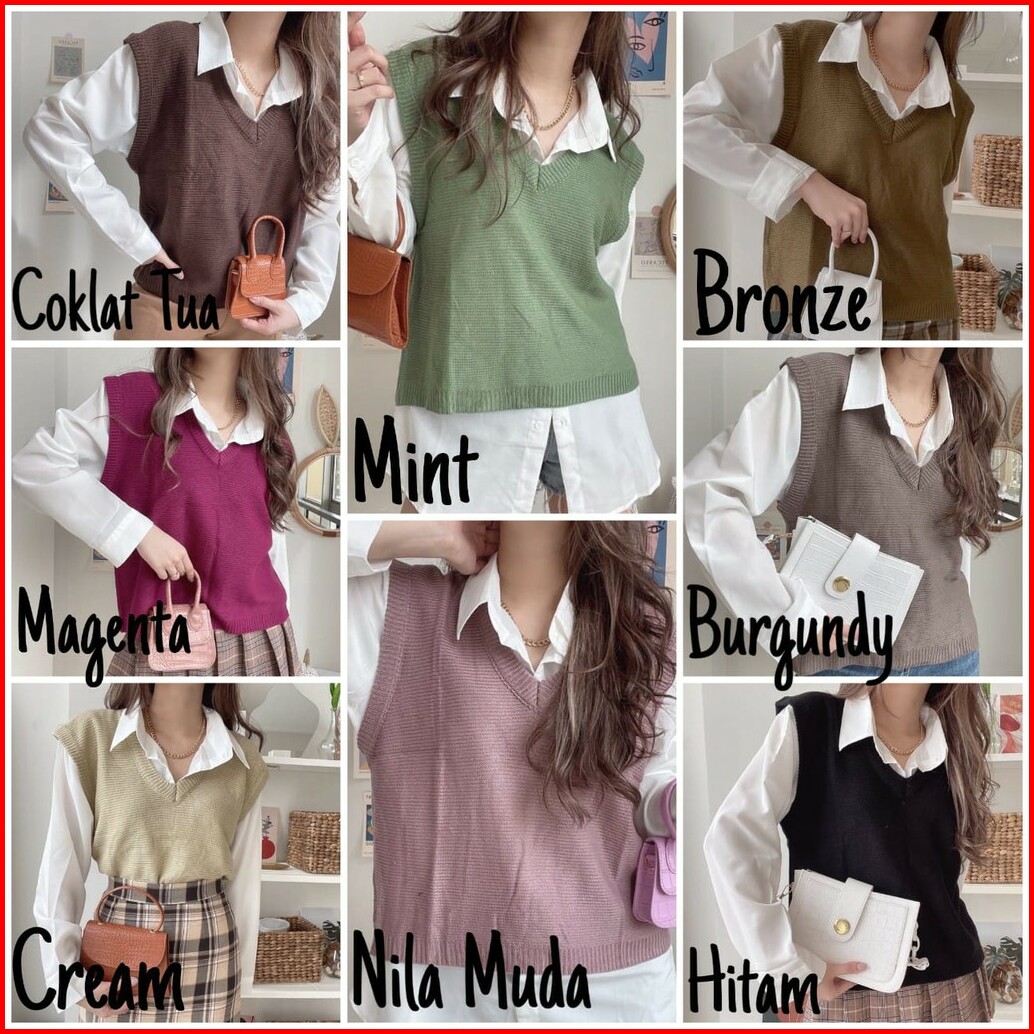 Hitam, Maroon, off white, nila, lilaq, Mint, creammuda, creamTua, Bronze, burgundy, Magenta, Cokelat Tua, Denim, Kemeja. Dalema rompi, Abu muda, Murstad